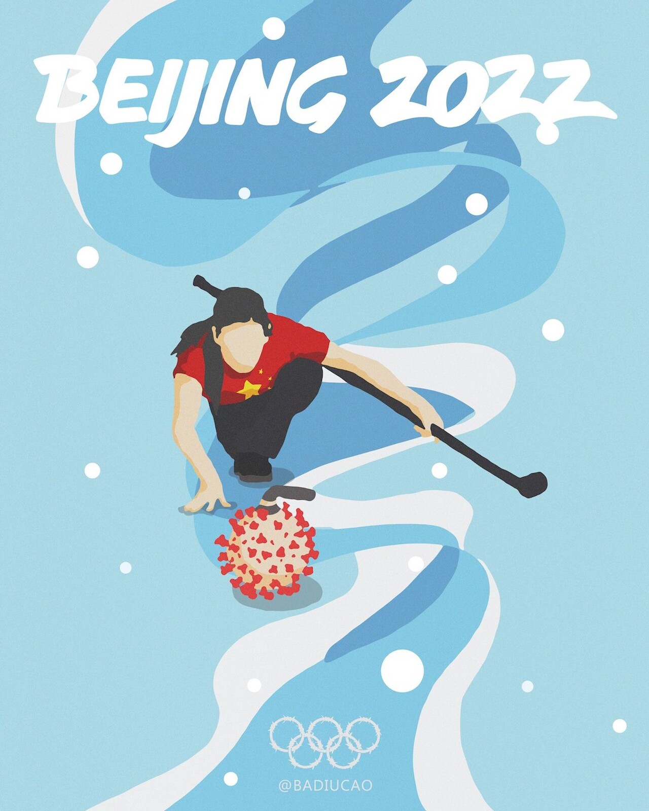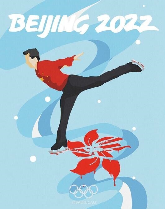 더불어 홍콩 국기를 스케이트 날로 찢고 있는 피겨 선수, 감시 및 통제를 의미하는 폐쇄회로TV(CCTV) 위 스노보드 선수 이미지 등도 있었는데요.
