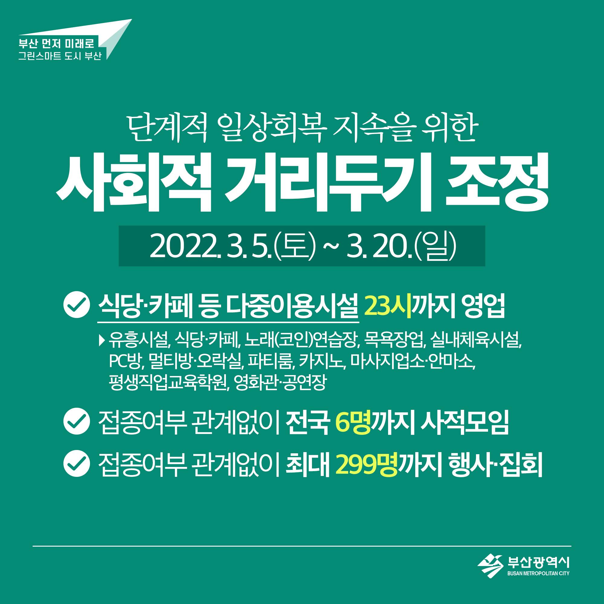 🔊 사회적 거리두기 조정(3.5.~3.20.)