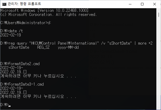 각 PC에서 윈도우 날짜 설정에 따라서 %DATE% 출력 값이 상이하여 배치파일로 일정한 형태의 날짜를 구하기가 어렵습니다.