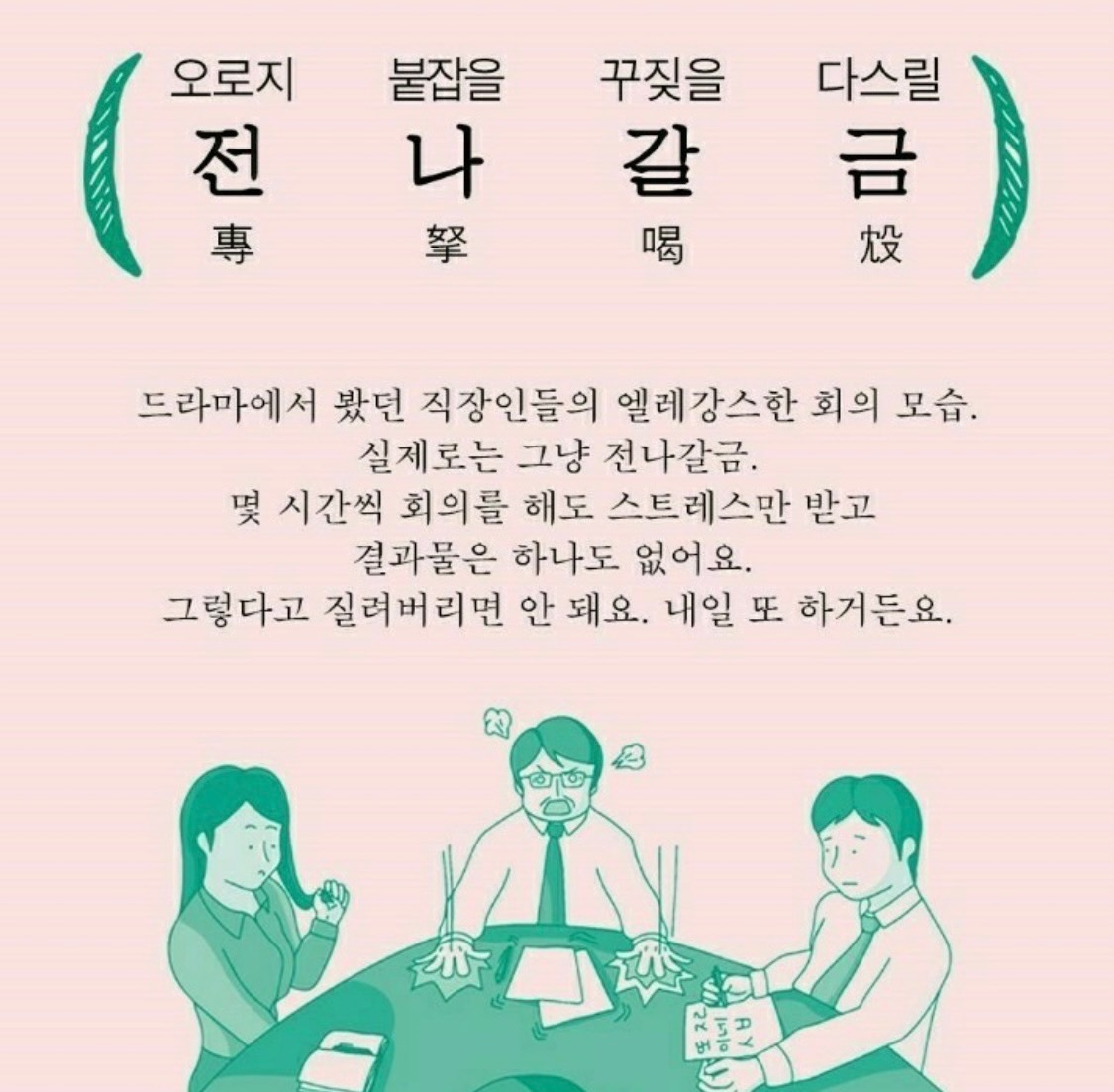 일하다 빡치 때 쓰기 좋은 사자성어