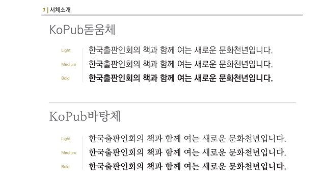 한국출판인회의(KOPUS)에서 2011년 전자출판 활성화를 위해 제작한 폰트입니다.