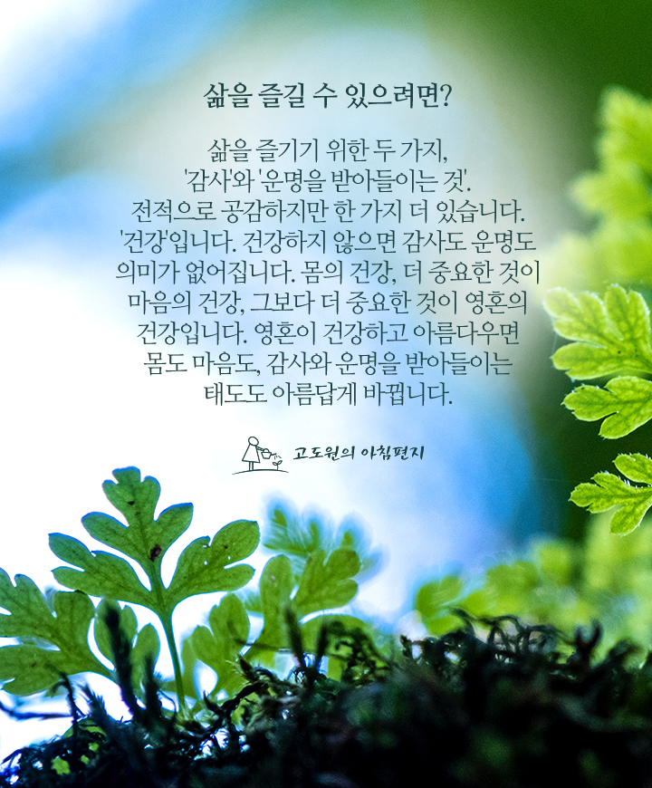 [고도원의 아침편지💌] 삶을 즐길 수 있으려면?