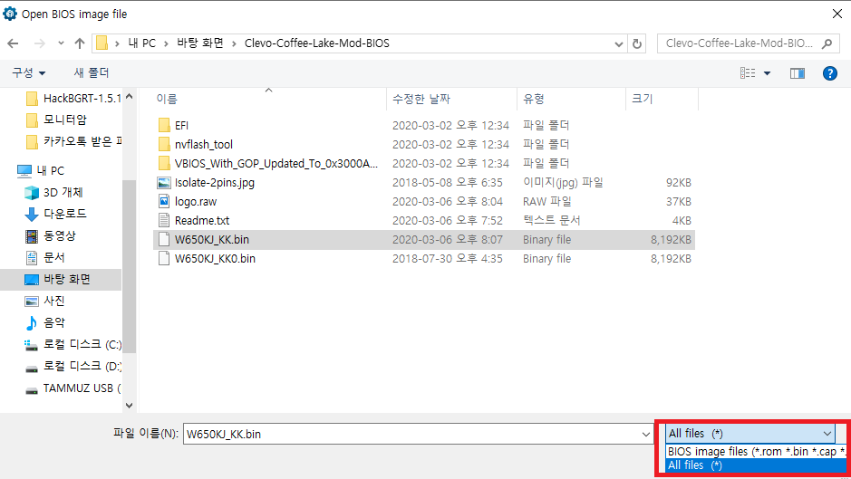 clevo 모델명 w650kk에 맞는 바이오스 롬파일을 찾았으며