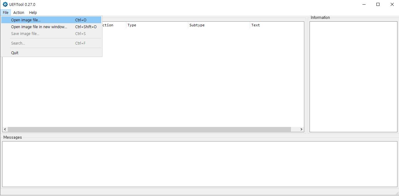 모든 준비를 마쳤으면 UEFITOOL.exe파일을 실행시킵니다.