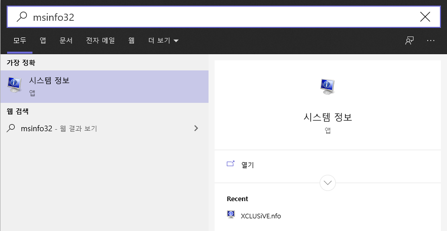 win+s(윈도우 검색) - msinfo32 (시스템 정보 앱)에서 확인 가능합니다.