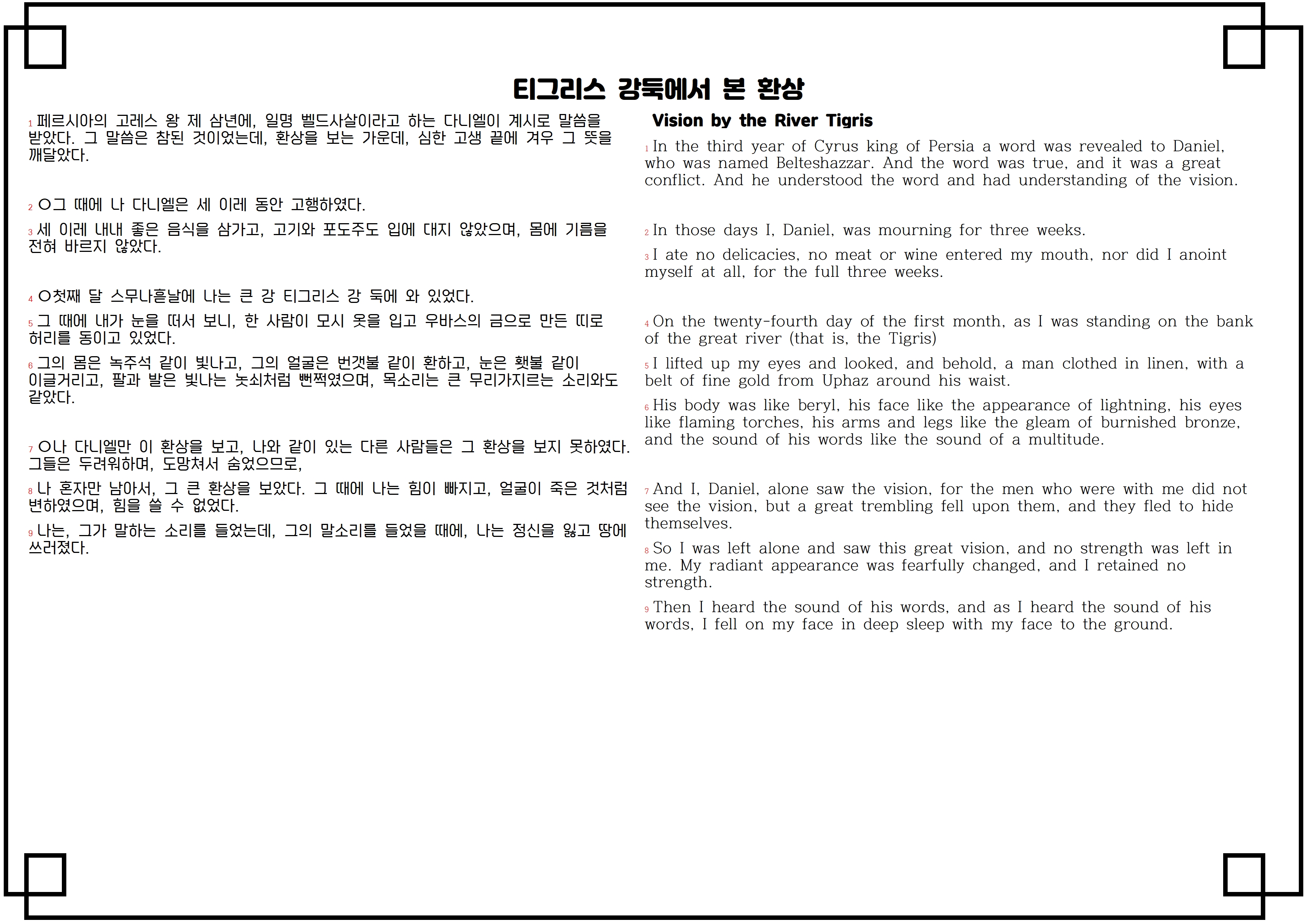 4 ○첫째 달 스무나흗날에 나는 큰 강 티그리스 강 둑에 와 있었다.