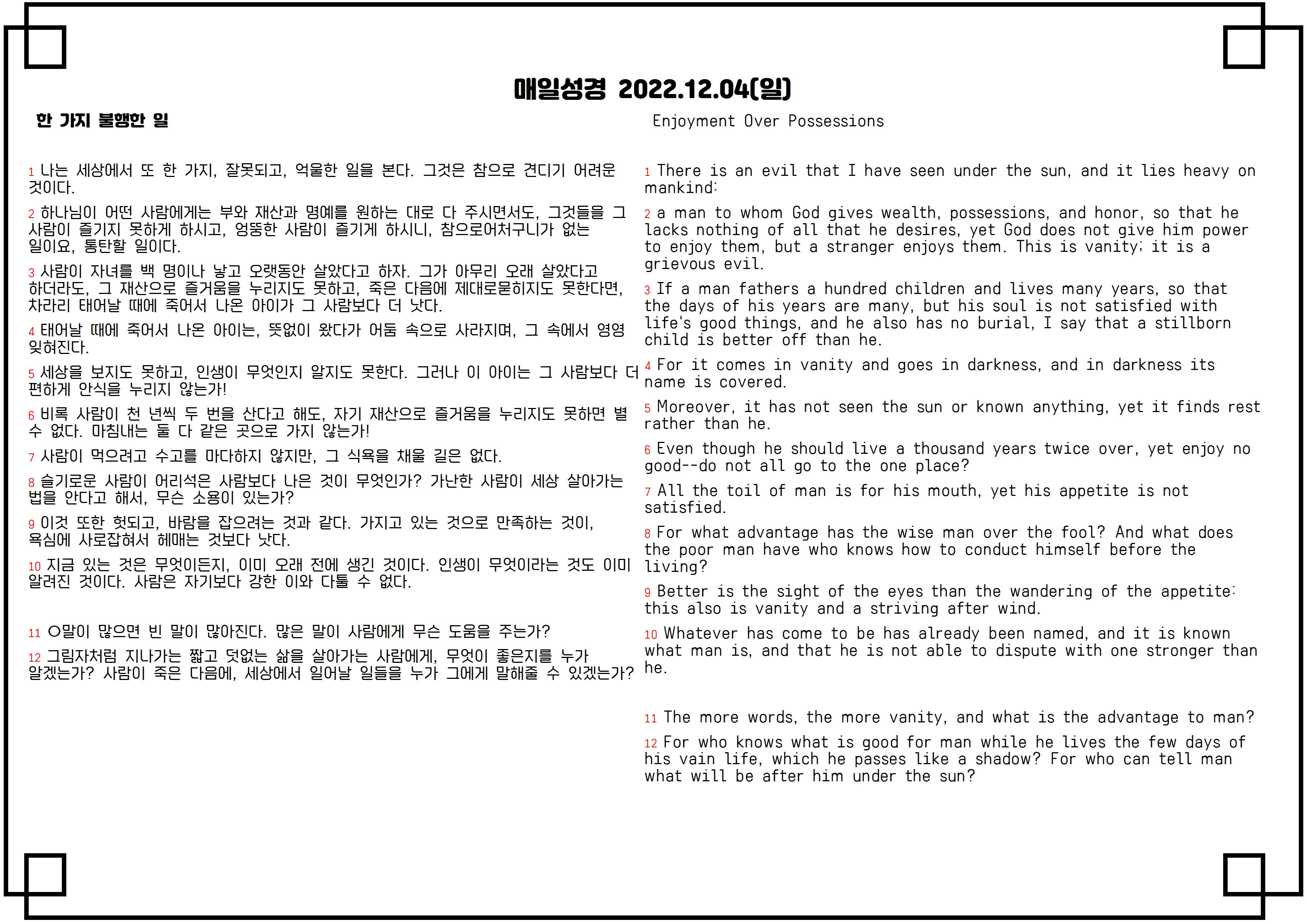 영한대조매일성경 2022.12.08(목)