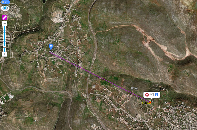 아이성과 여리고성 3D/2D 지도 (출처 : biblemap.or.kr )
