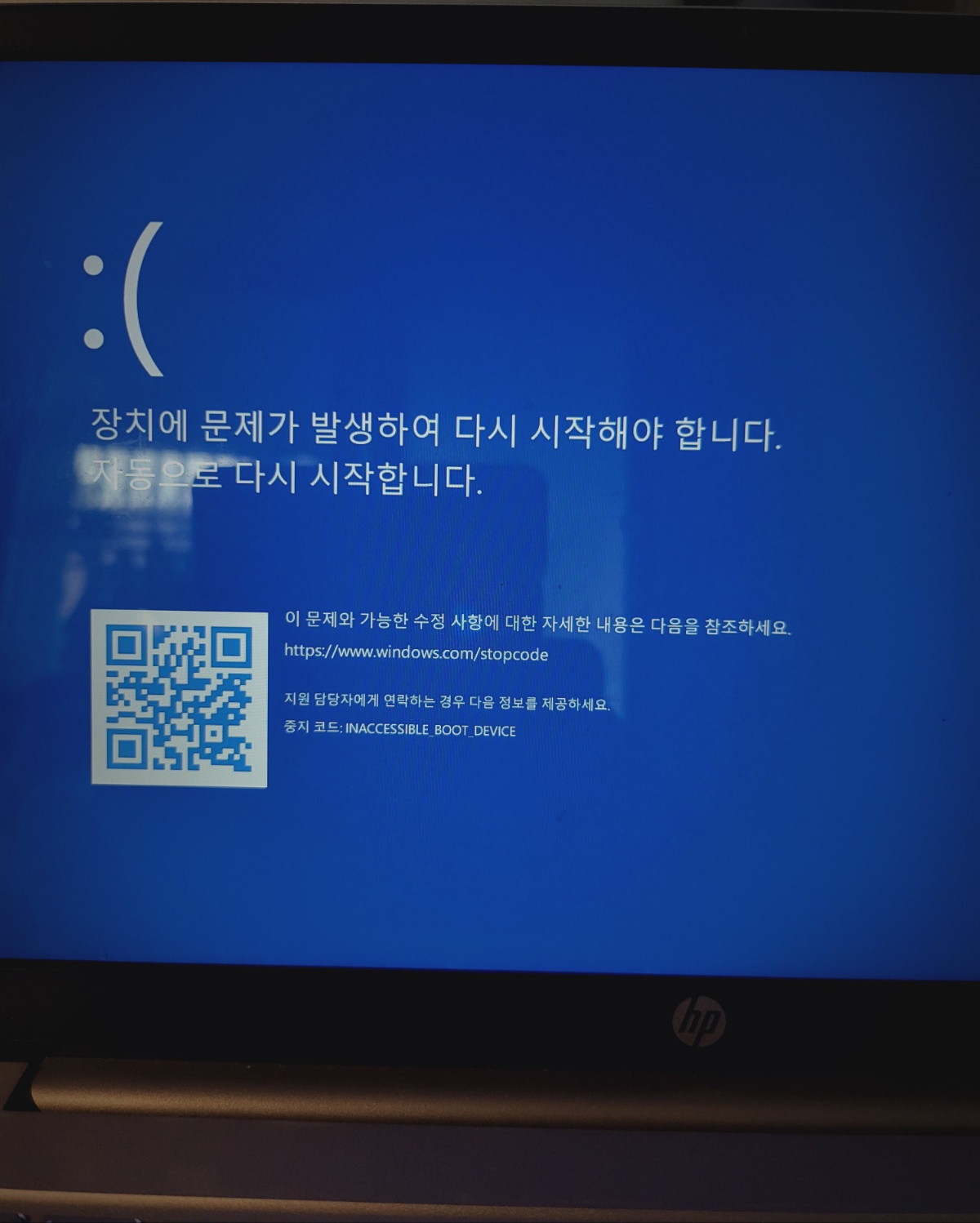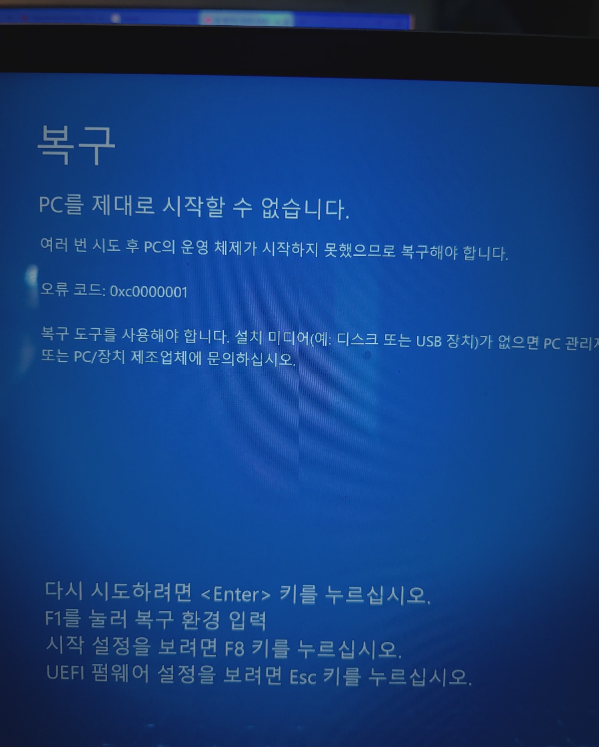 프로그램 초기설치 화면 후 재부팅후 위와 같은 오류가 나오 초치가 되지 않았습니다.