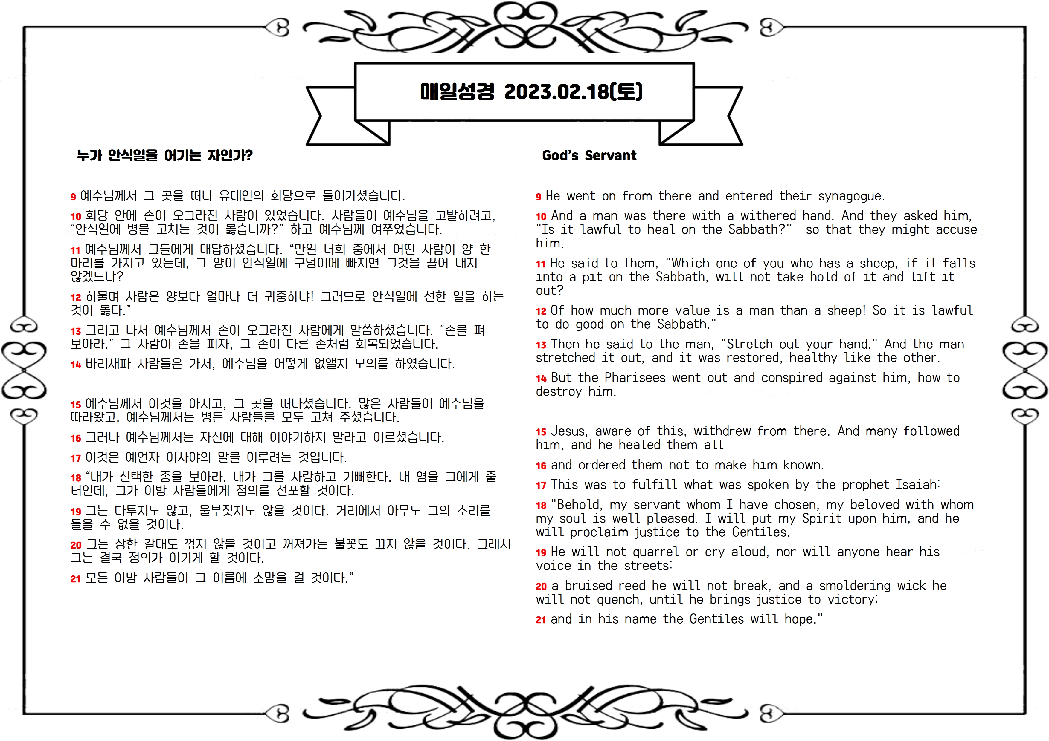 | 매일성경 2023.02.19(일) (1) | 2023.02.18 |