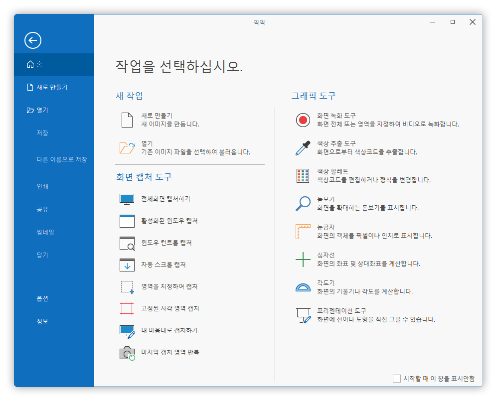 강력한 화면 캡처, 이미지 고급 편집, 화면 색상 추출 및 나만의 색상 관리, 이미지 크기 및 각도 계산, 화면 그리기 도구 등 모든 기능을 하나의 소프트웨어로 통합하세요.