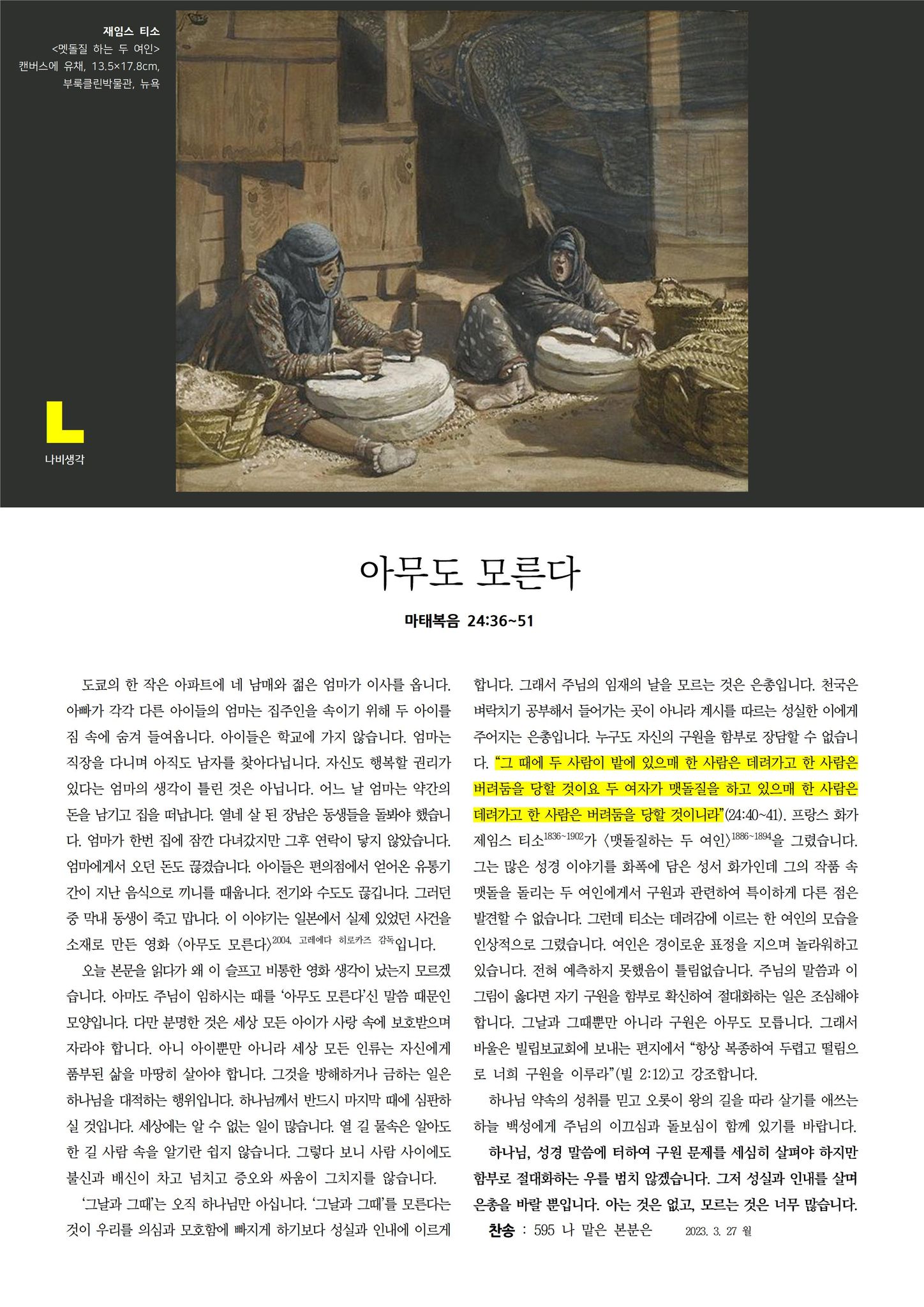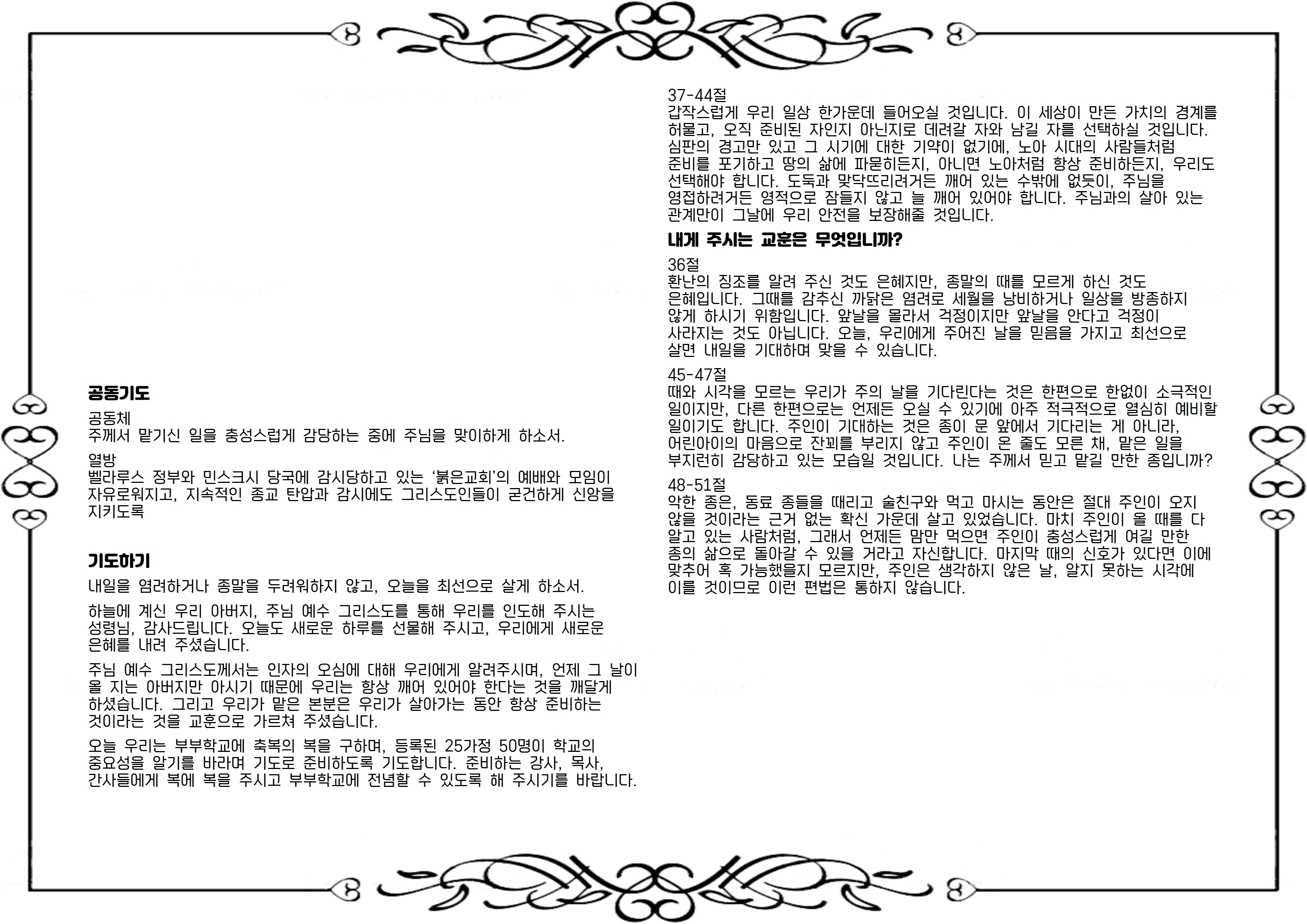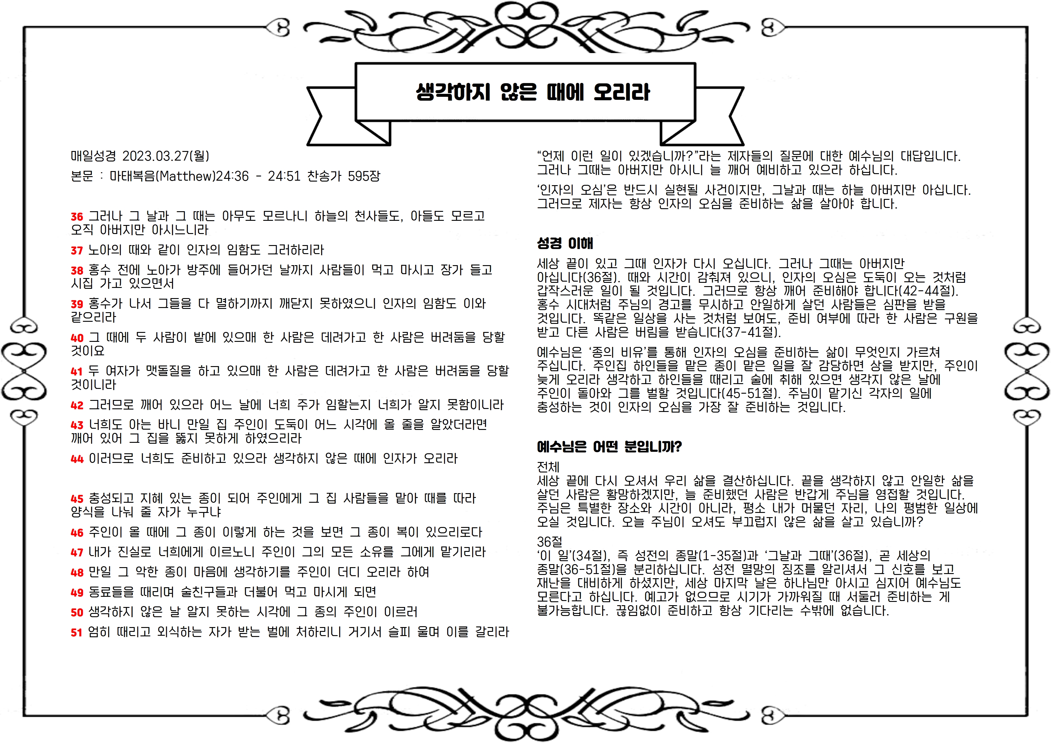 본문 : 마태복음(Matthew)24:36 - 24:51 찬송가 595장