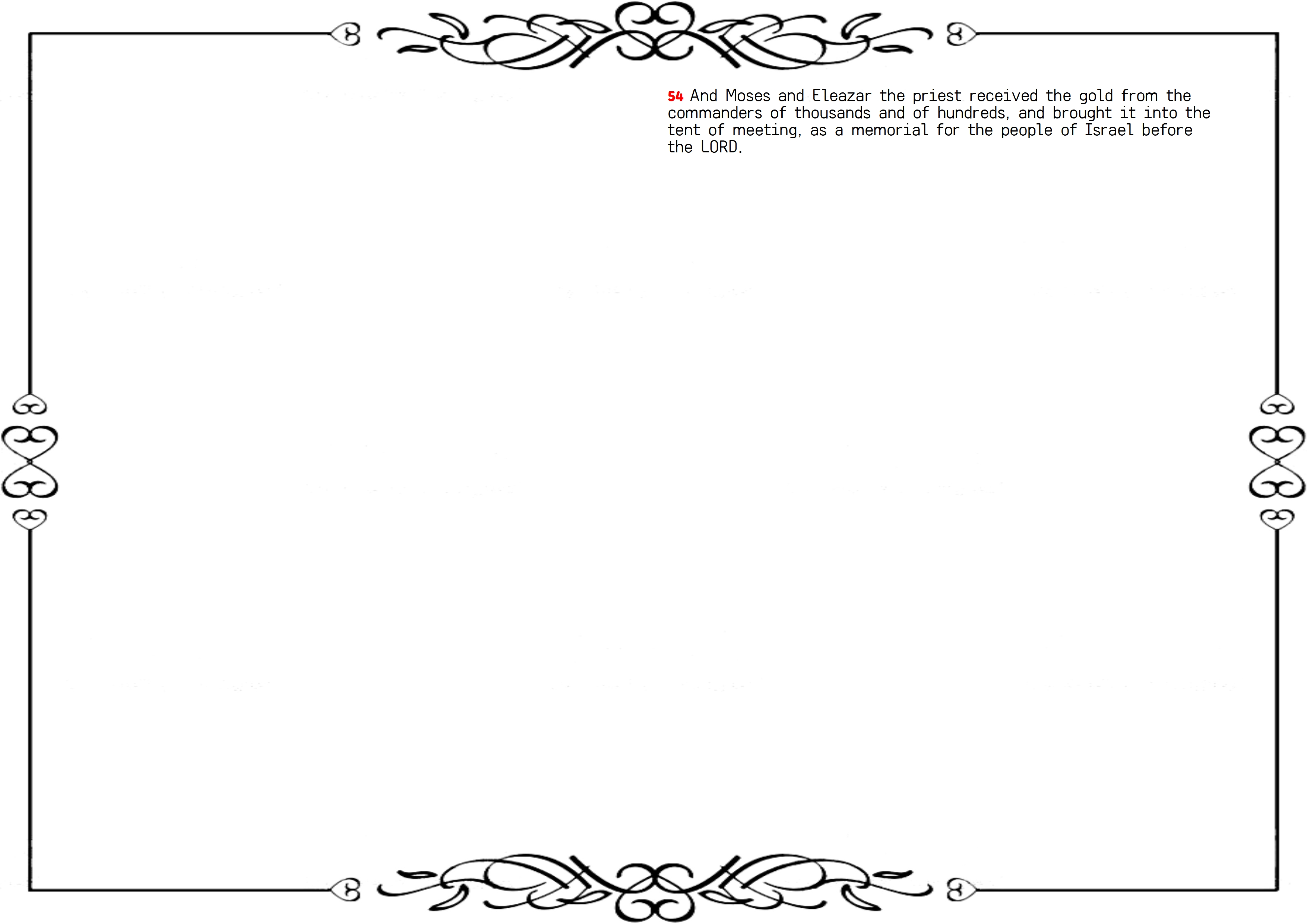 54 And Moses and Eleazar the priest received the gold from the commanders of thousands and of hundreds, and brought it into the tent of meeting, as a memorial for the people of Israel before the LORD.
