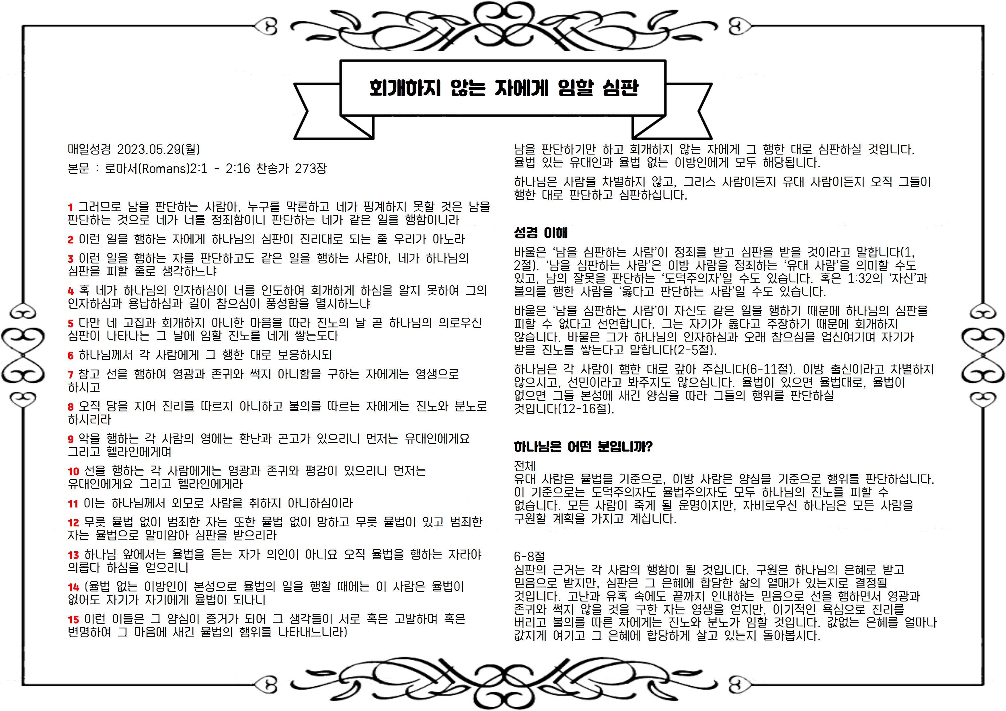 | 매일성경 2023.05.27(토) (0) | 2023.05.26 |