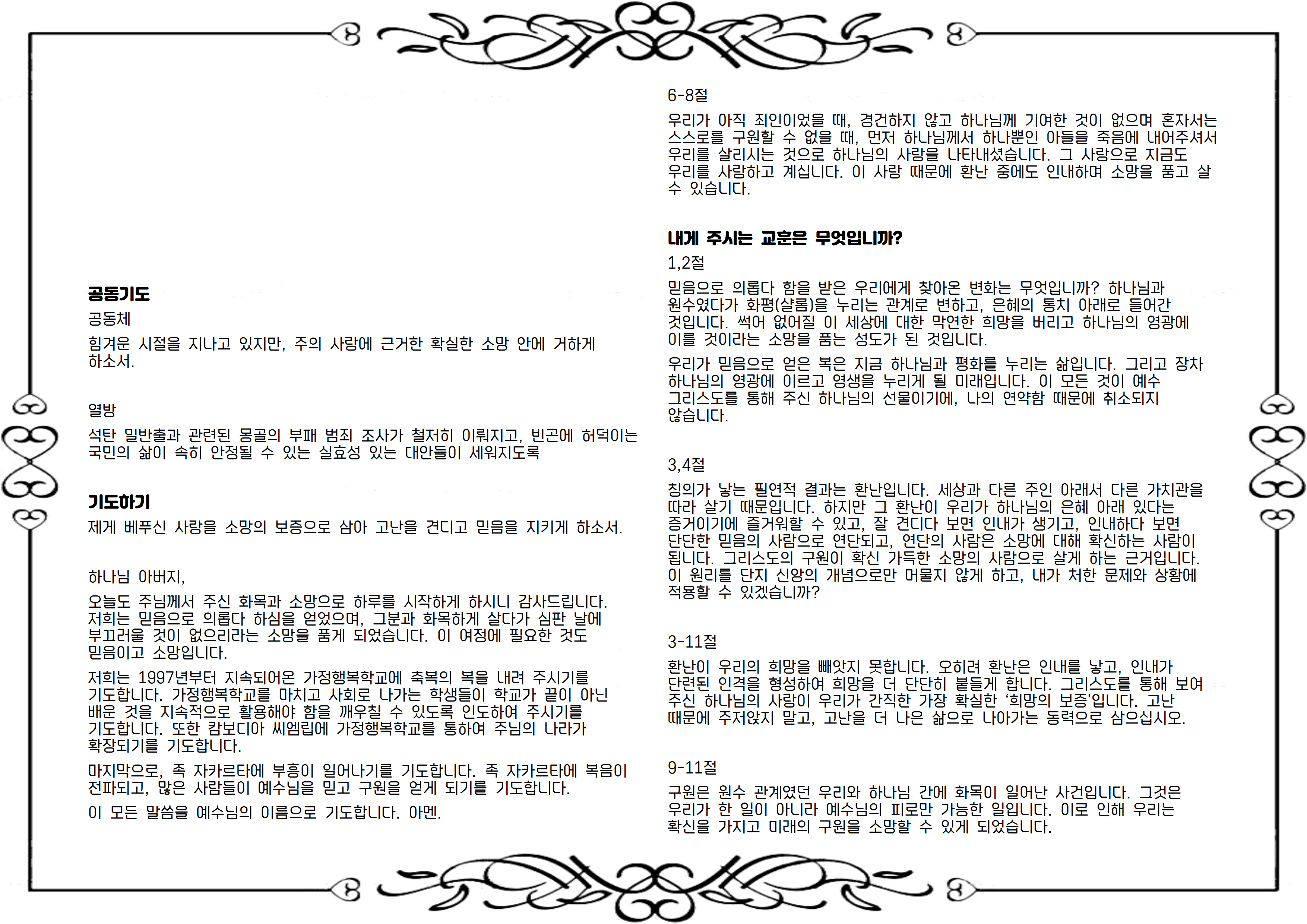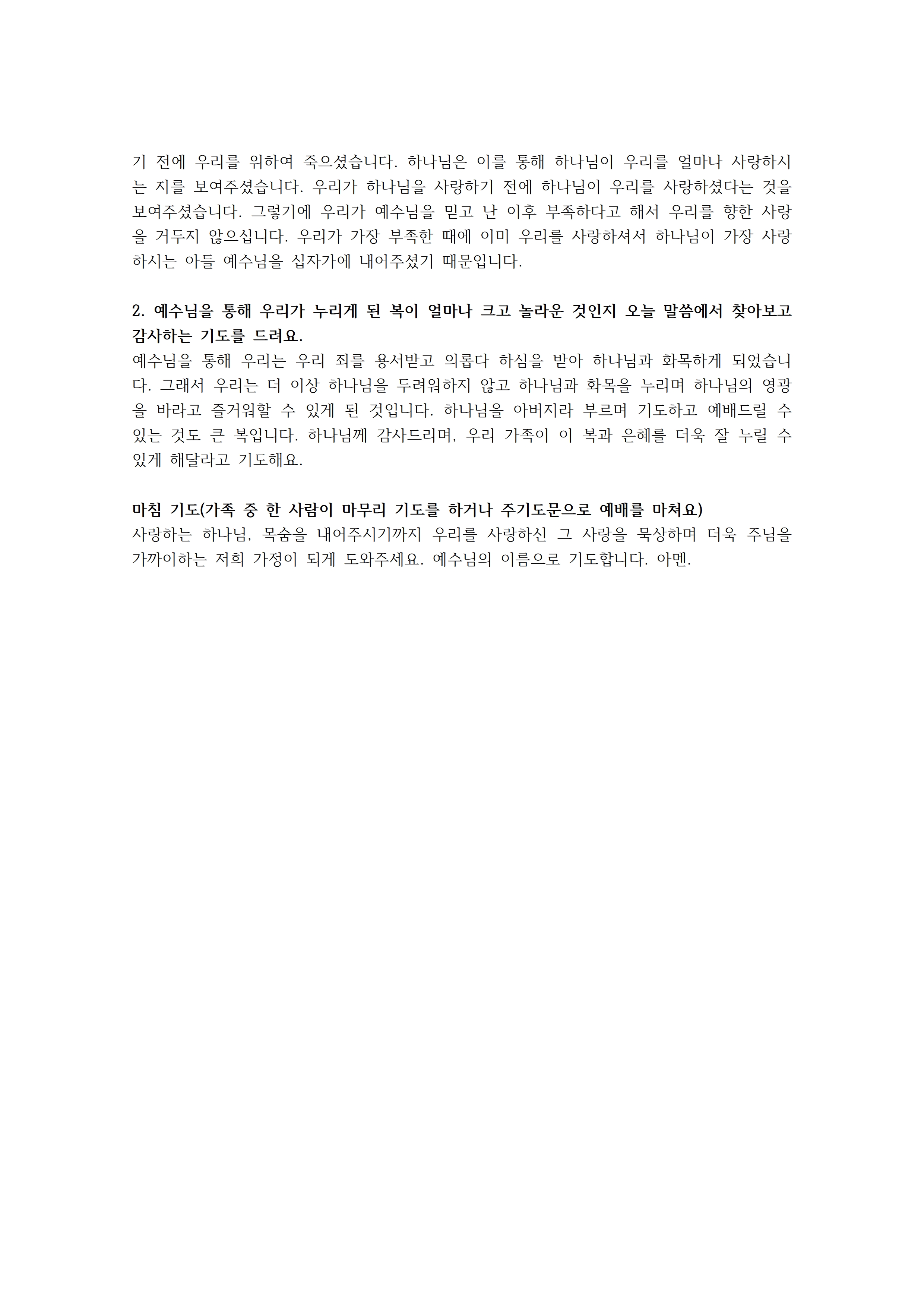 이 모든 말씀을 예수님의 이름으로 기도합니다. 아멘.
