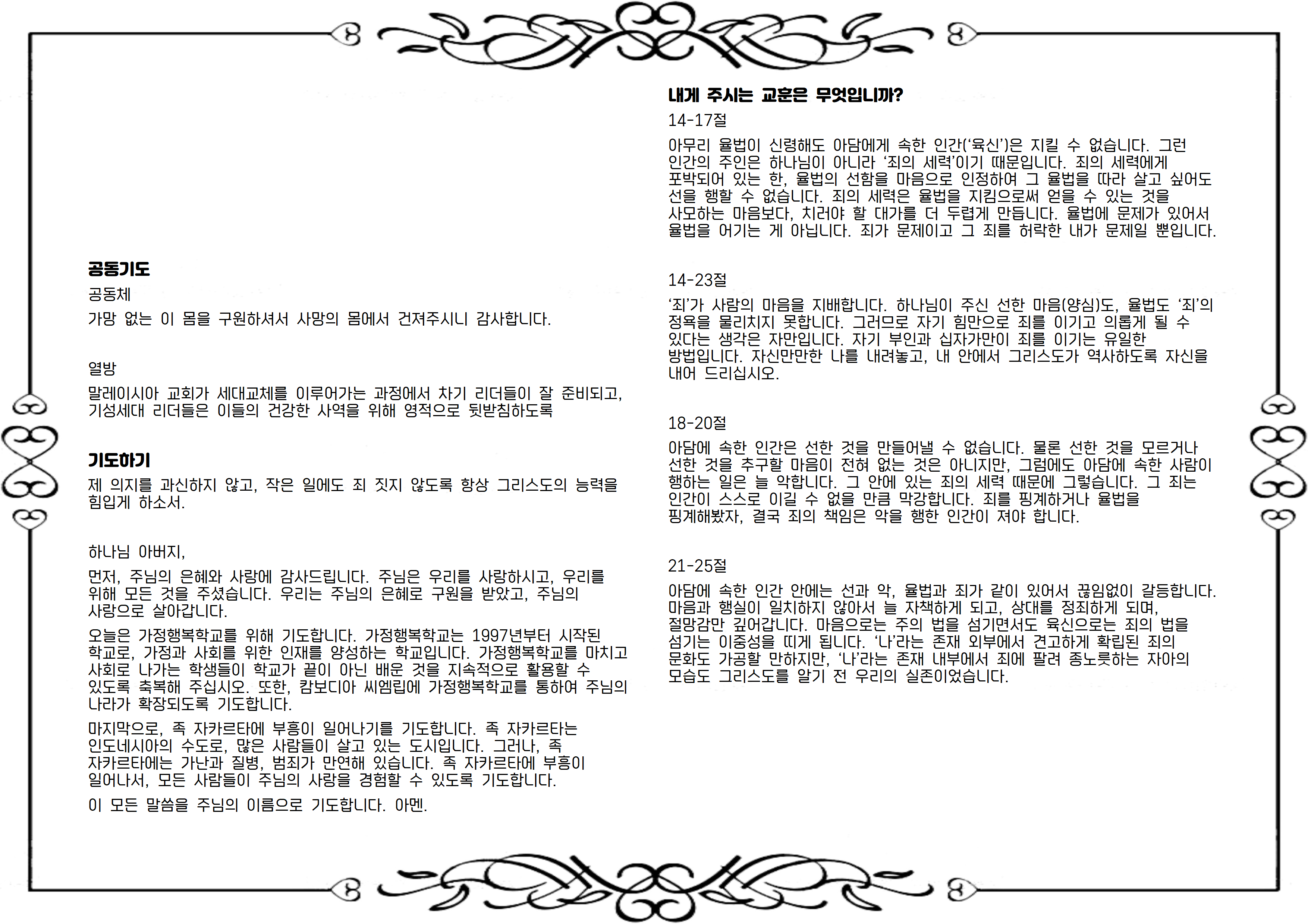 이 모든 말씀을 주님의 이름으로 기도합니다. 아멘.