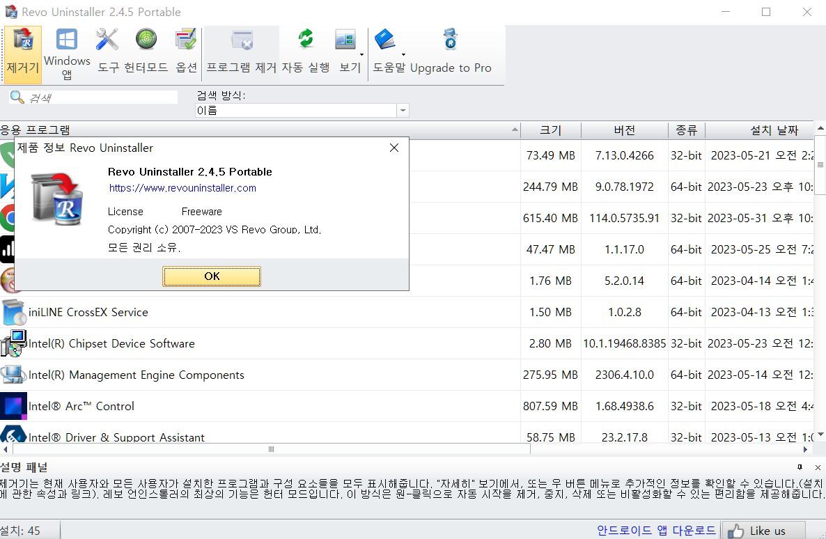 포터블 : https://www.revouninstaller.com/download/RevoUninstaller_Portable.zip