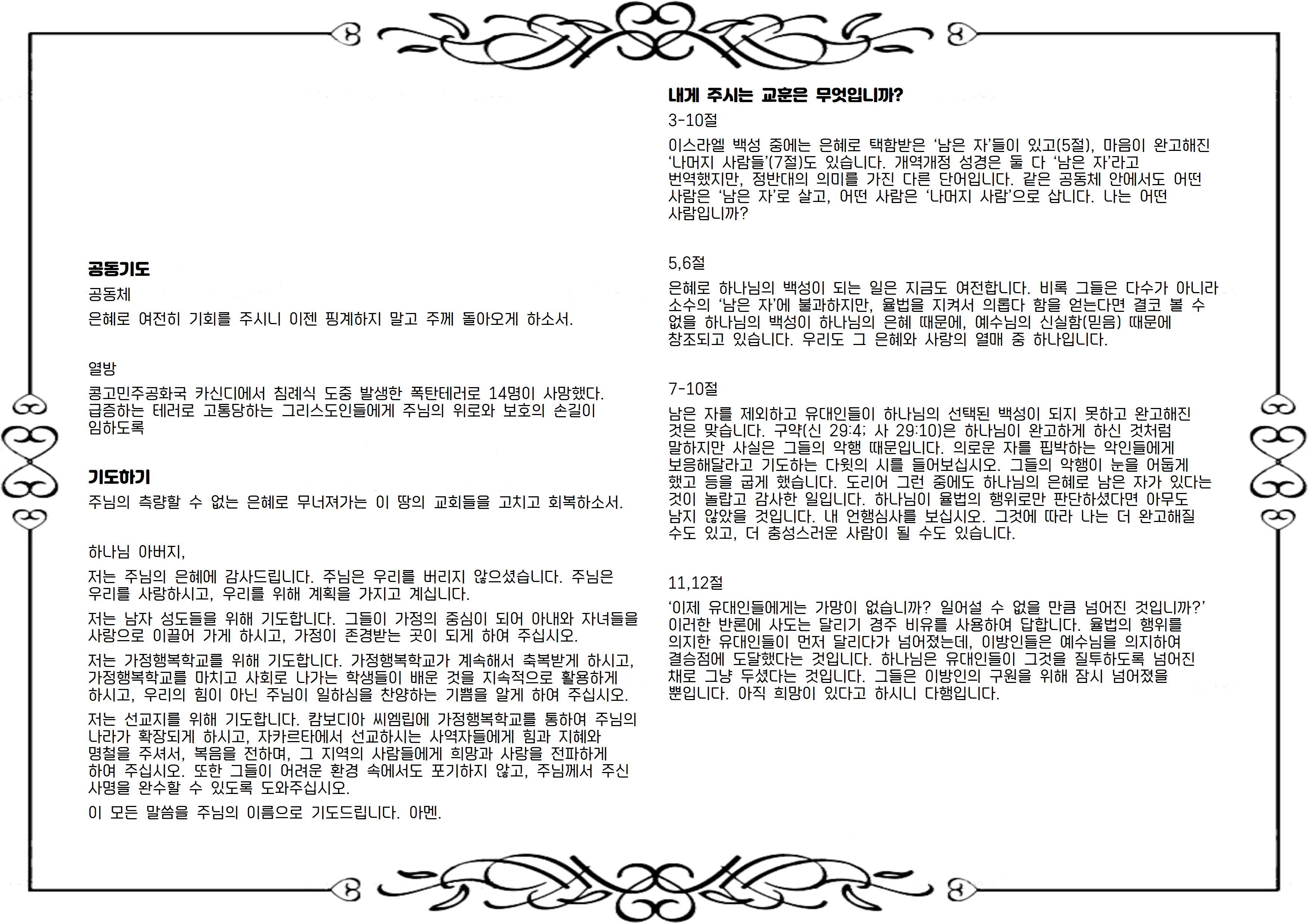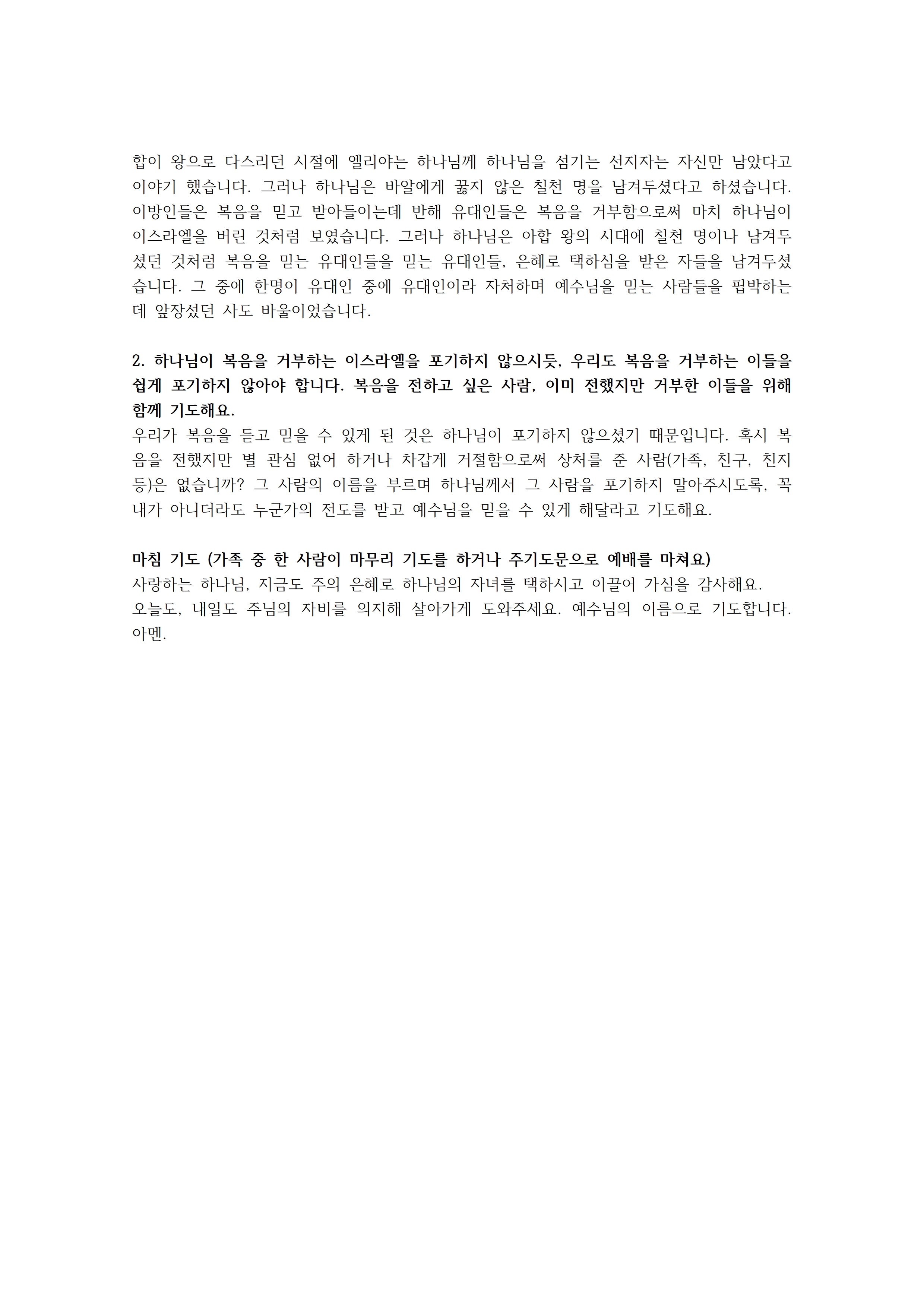 이 모든 말씀을 주님의 이름으로 기도드립니다. 아멘.