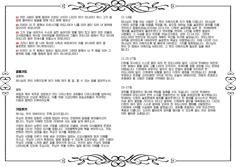 본문 : 열왕기상(1 Kings)1:11 - 1:27 찬송가 140장