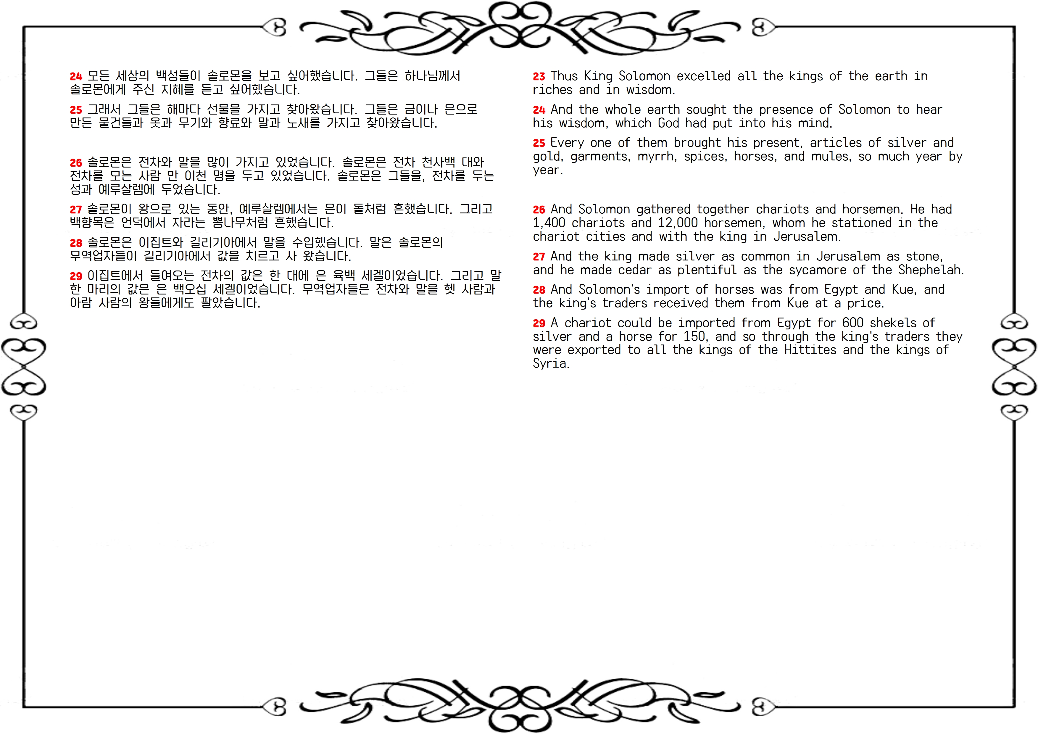 23 솔로몬 왕의 재산과 지혜가 세상의 그 어느 왕보다 큰지라
