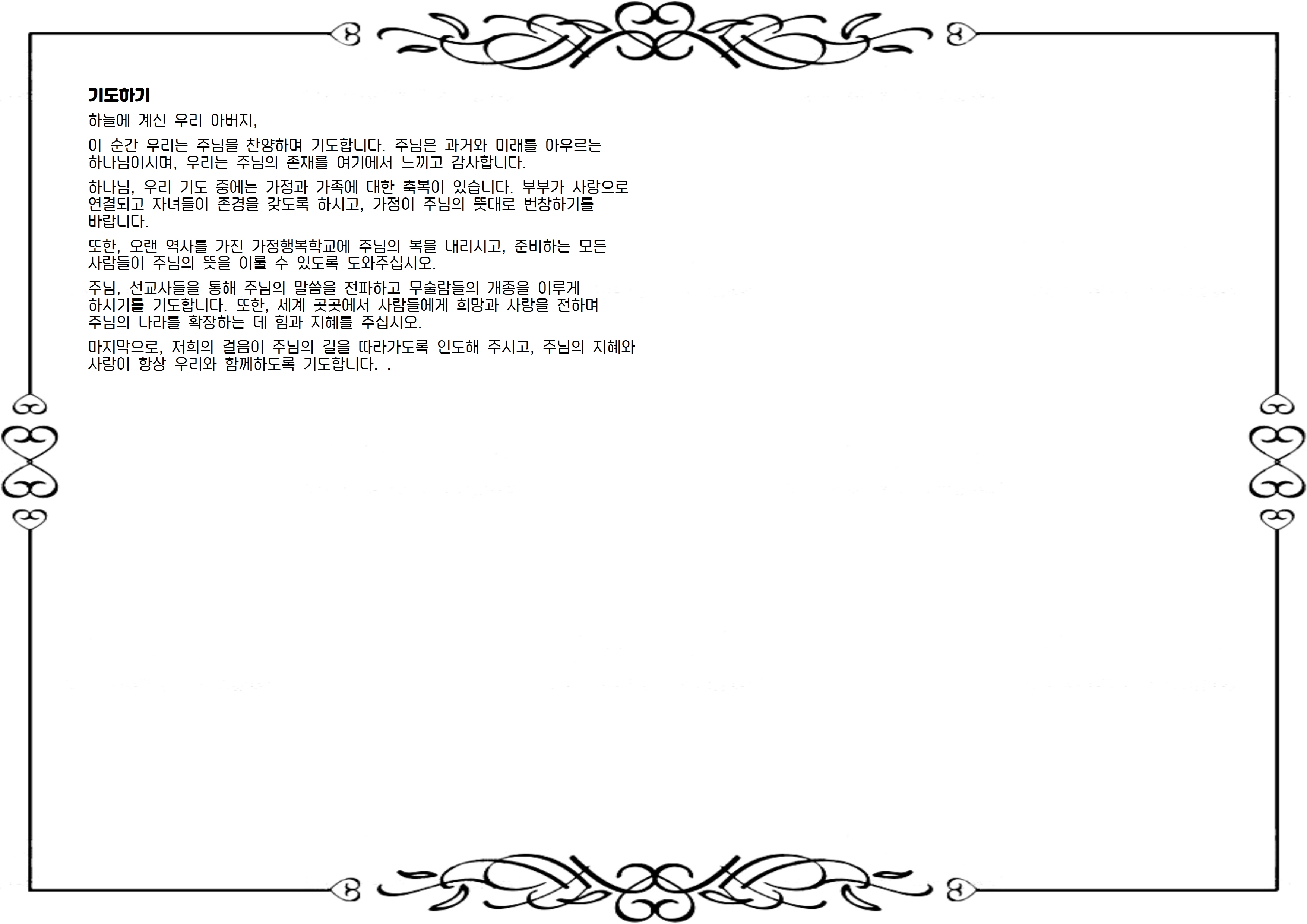 또한, 오랜 역사를 가진 가정행복학교에 주님의 복을 내리시고, 준비하는 모든 사람들이 주님의 뜻을 이룰 수 있도록 도와주십시오.
