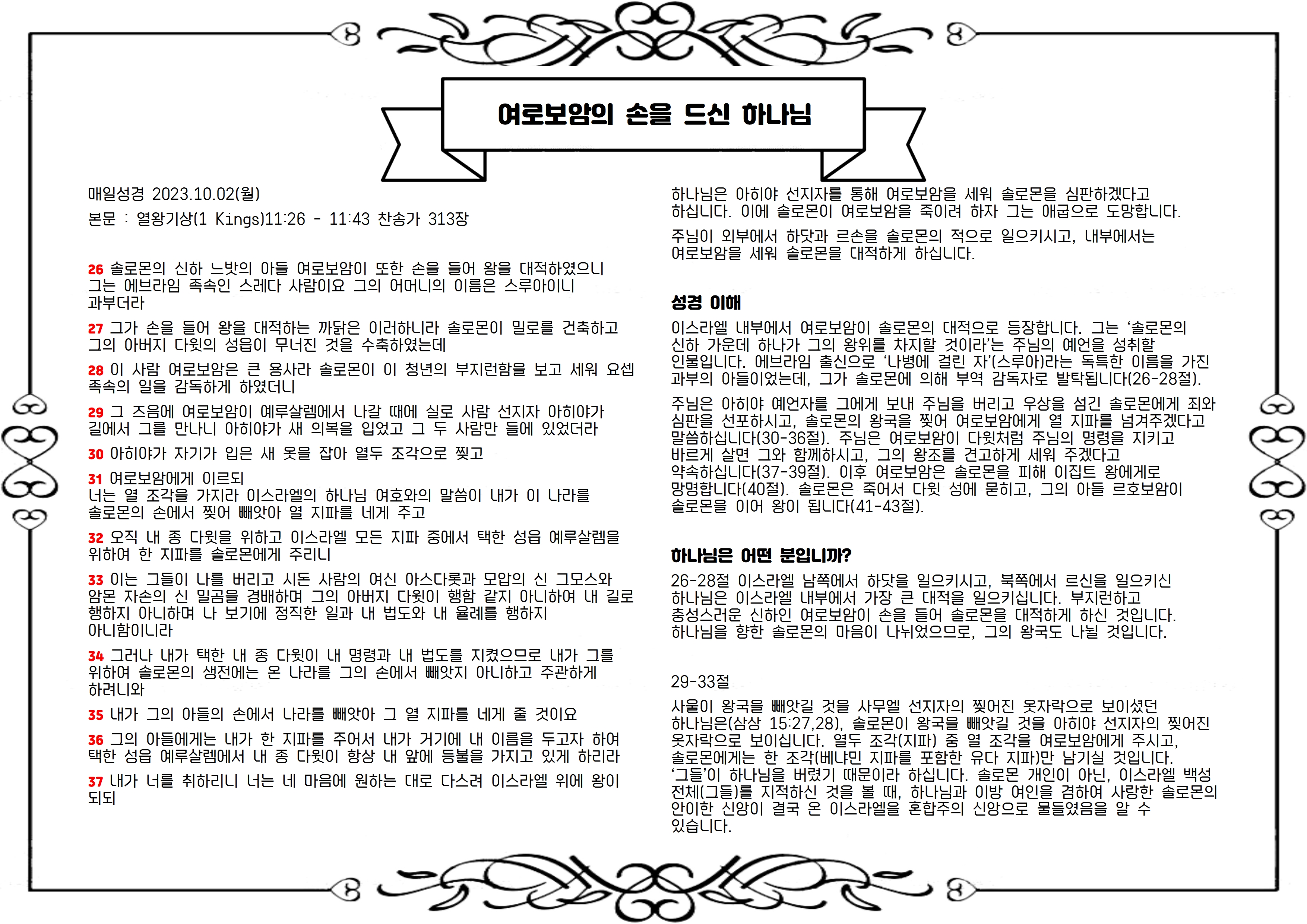 본문 : 열왕기상(1 Kings)11:26 - 11:43 찬송가 313장