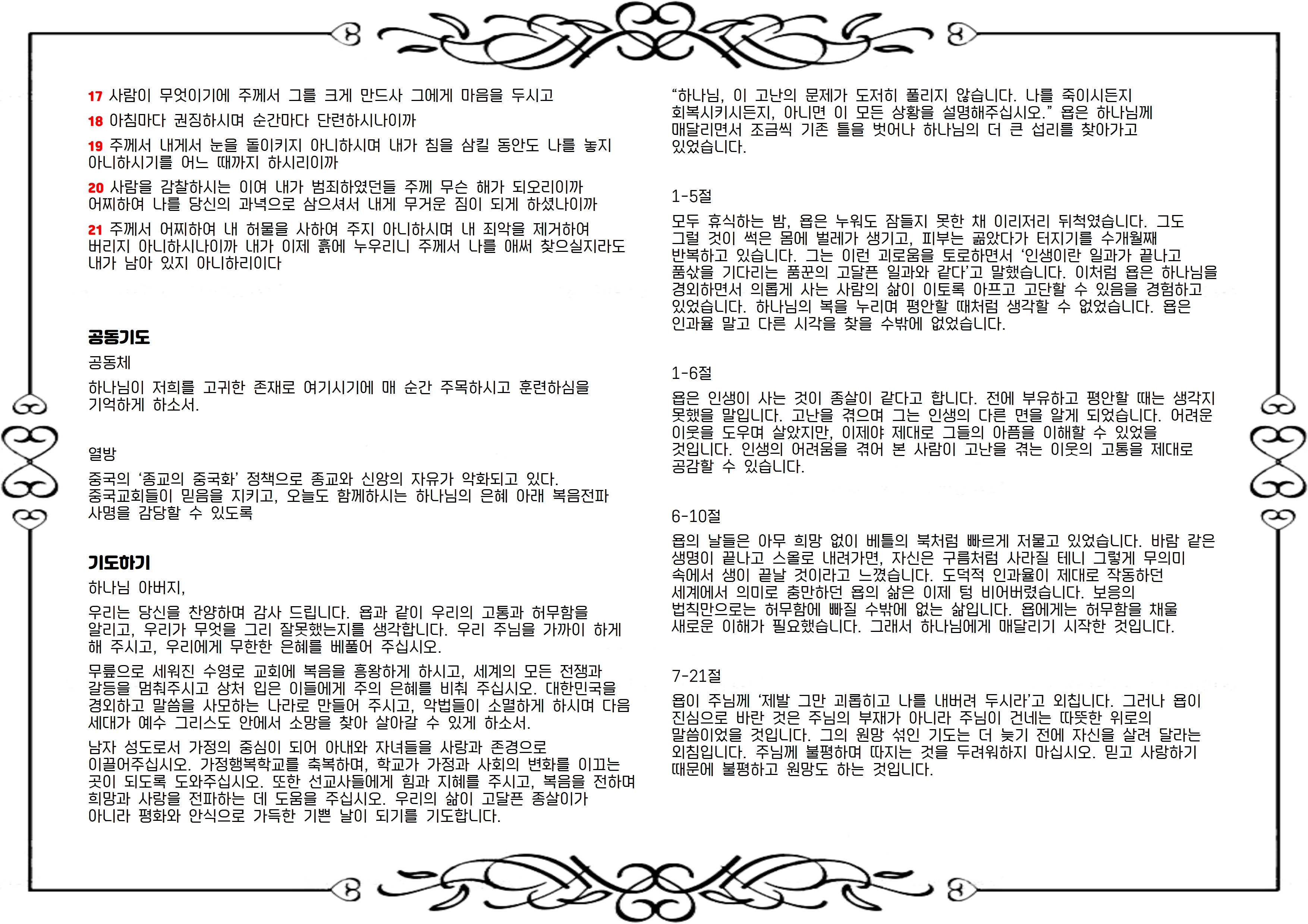 본문 : 욥기(Job)7:1 - 7:21 찬송가 338장