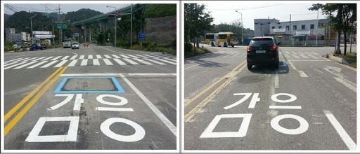 감응신호 표지판이 보인다면 노면 위 사각형에 차를 정차시켜주세요.