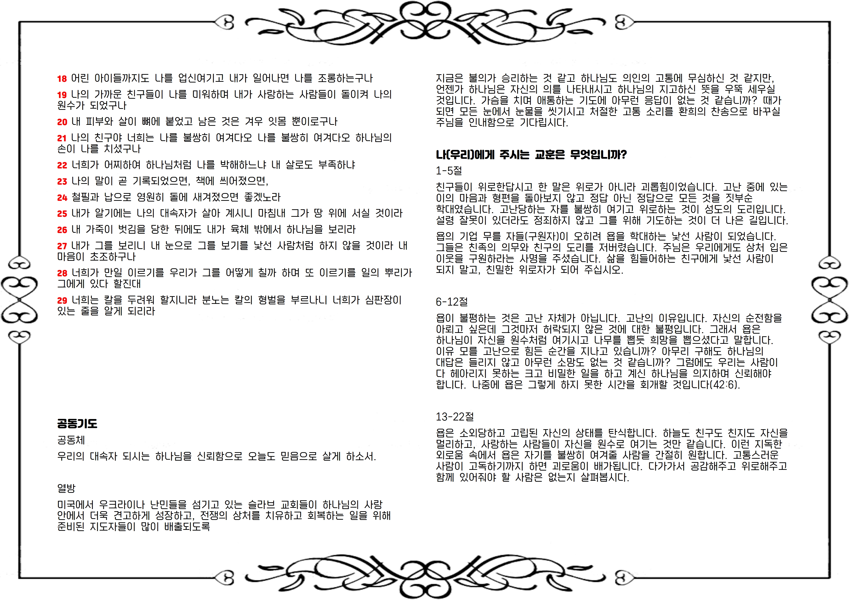 본문 : 욥기(Job)19:1 - 19:29 찬송가 170장