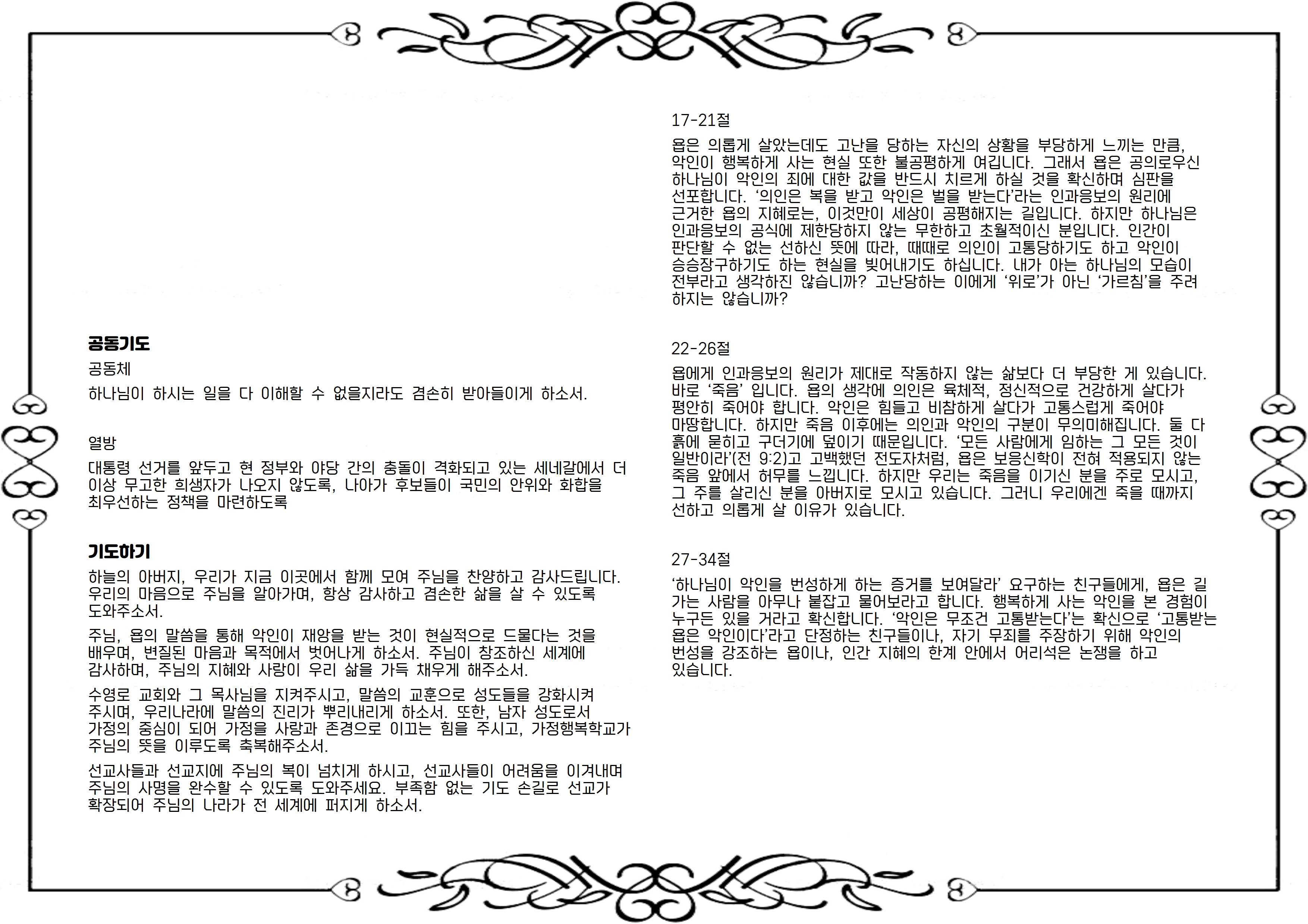 본문 : 욥기(Job)21:17 - 21:34 찬송가 79장