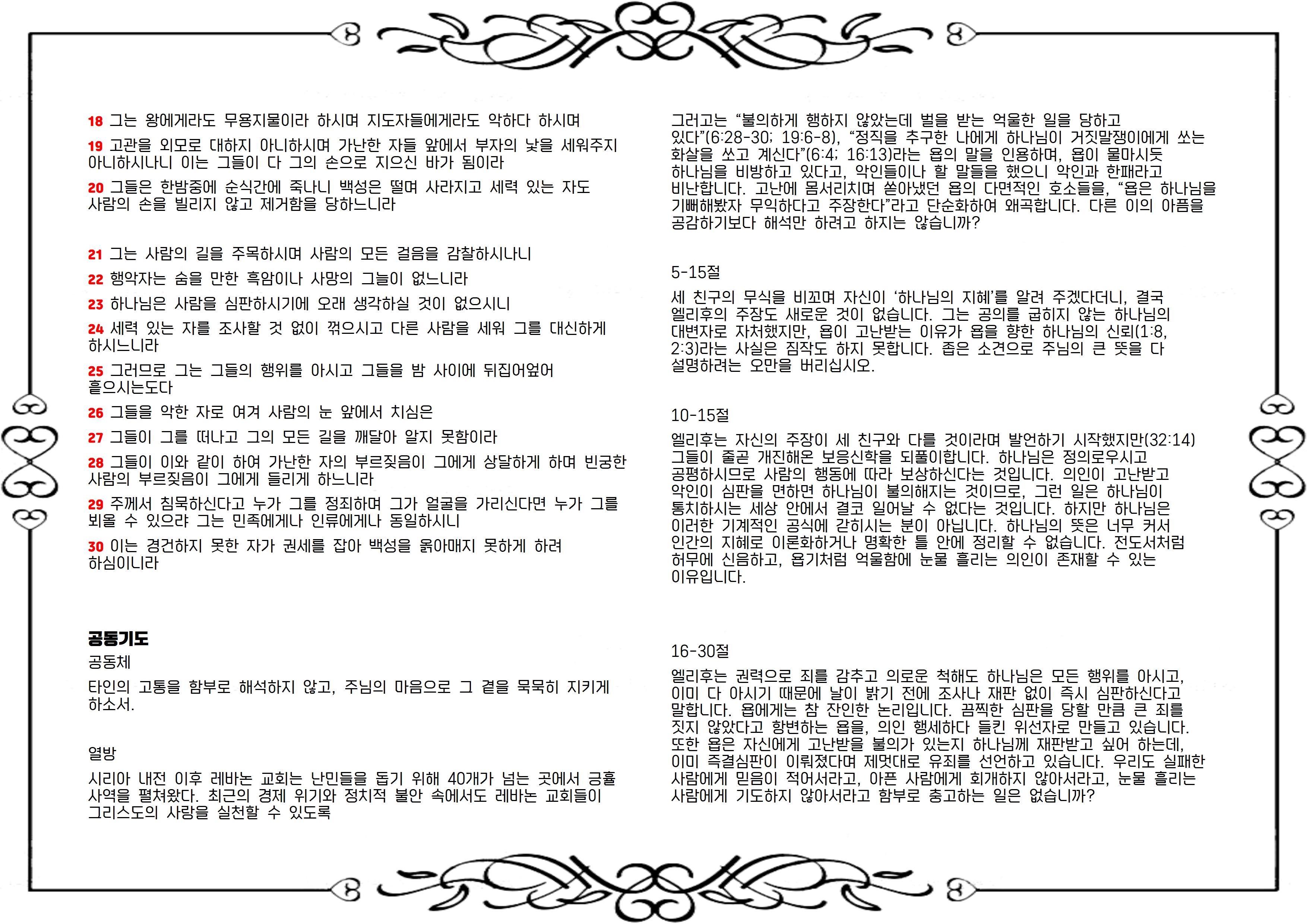 본문 : 욥기(Job)34:1 - 34:30 찬송가 391장