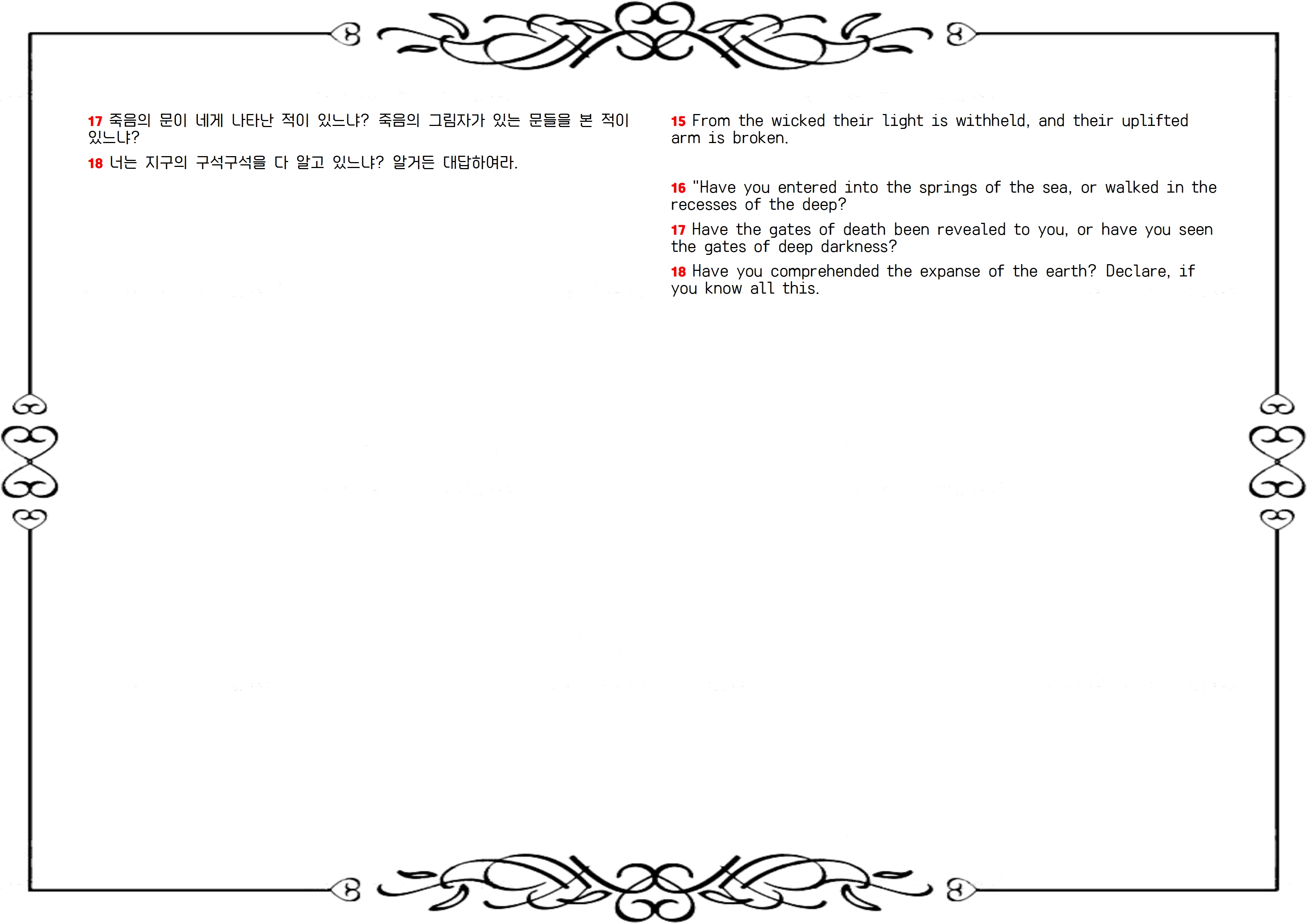 17 사망의 문이 네게 나타났느냐 사망의 그늘진 문을 네가 보았느냐