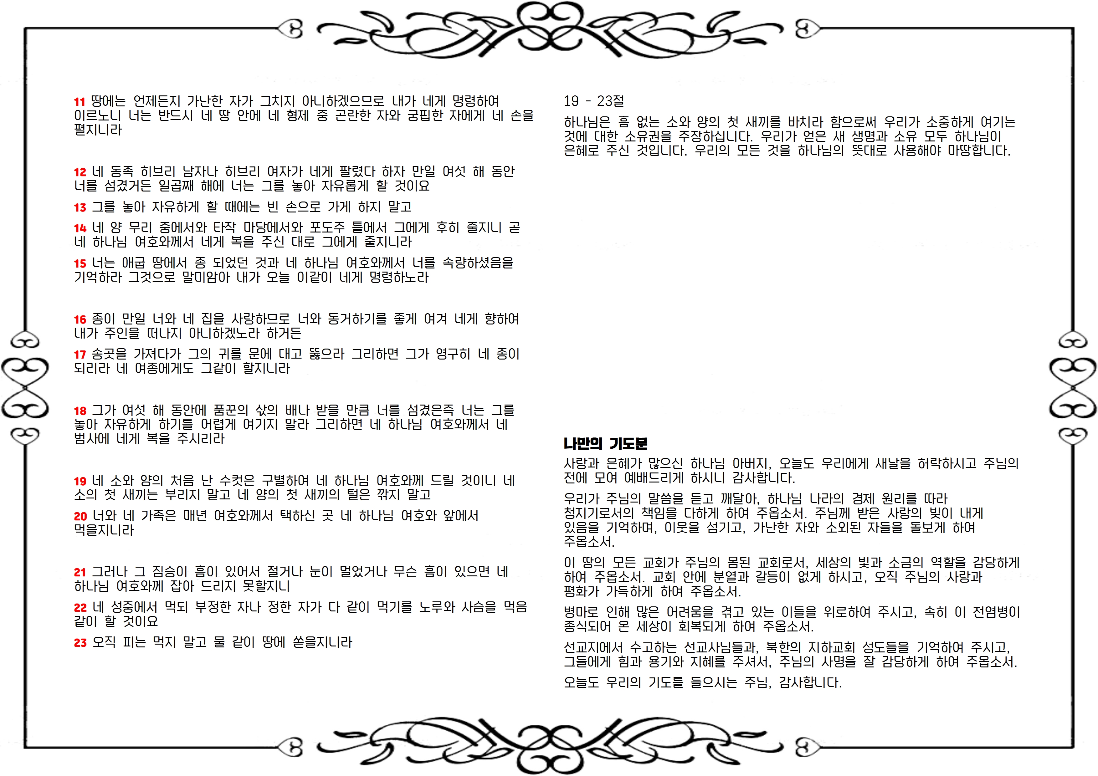 본문 : 신명기(Deuteronomy)15:1 - 15:23 찬송가 28장