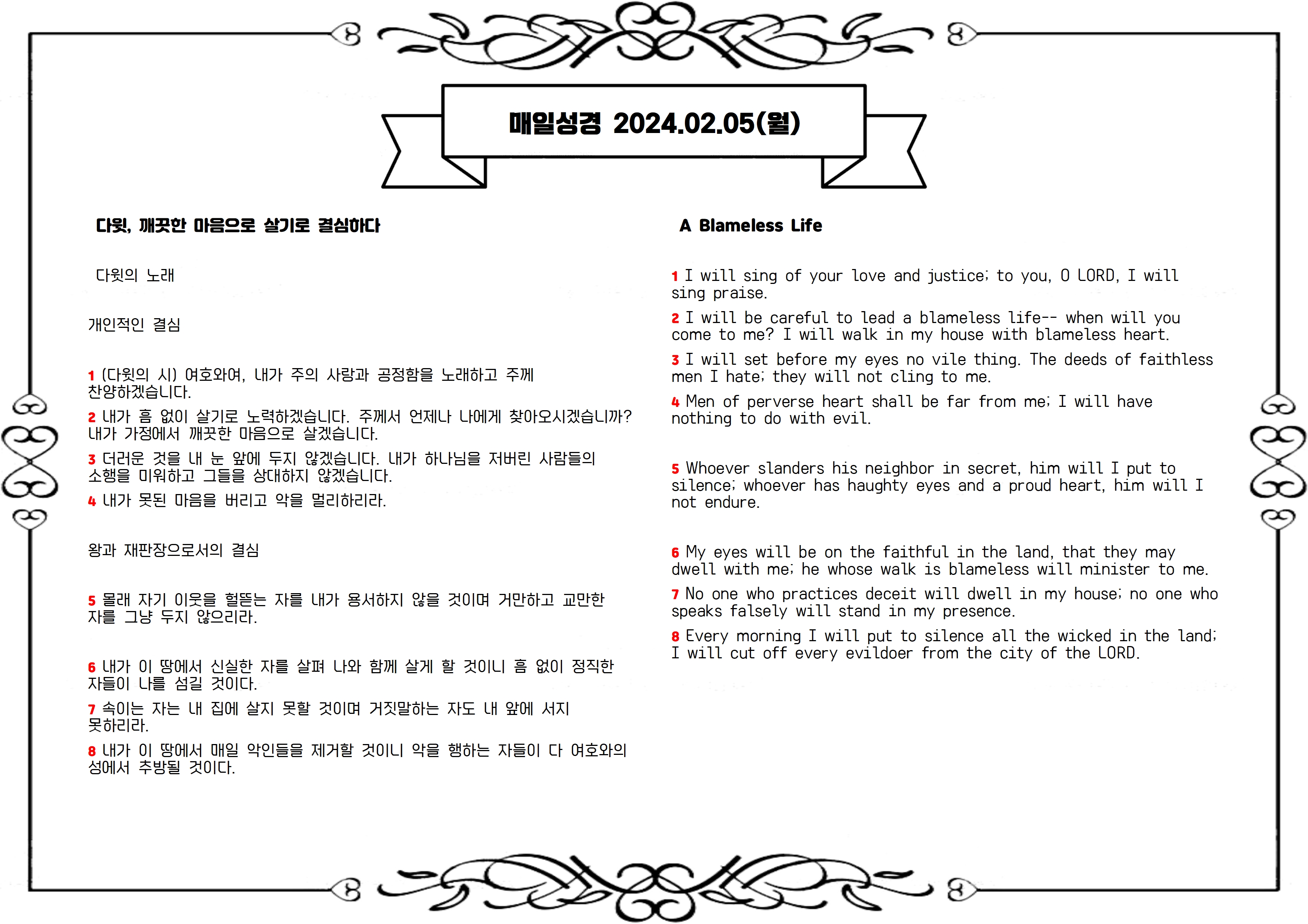 | 매일성경 2024.02.01(목) (0) | 2024.01.31 |