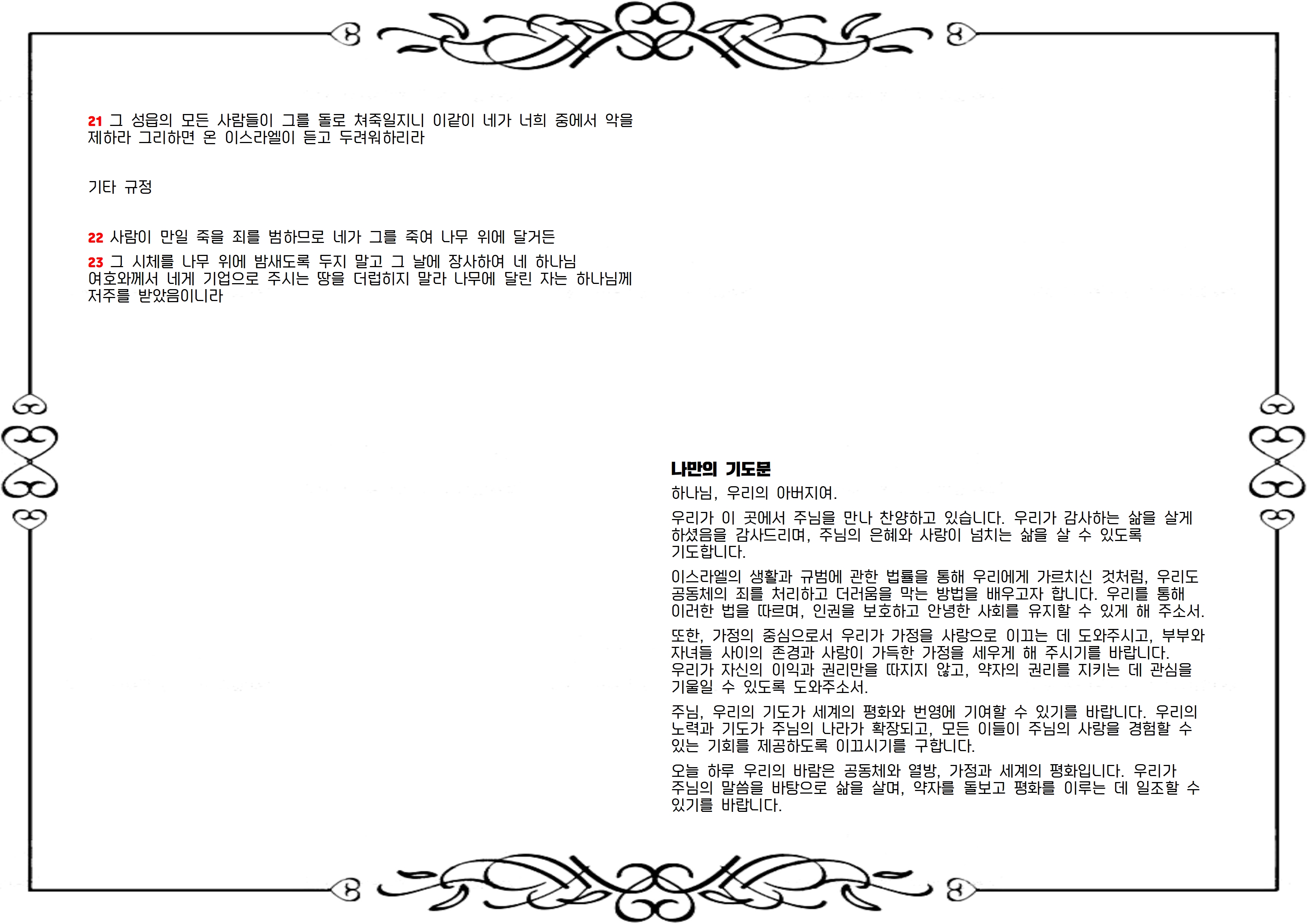 본문 : 신명기(Deuteronomy)21:1 - 21:23 찬송가 96장