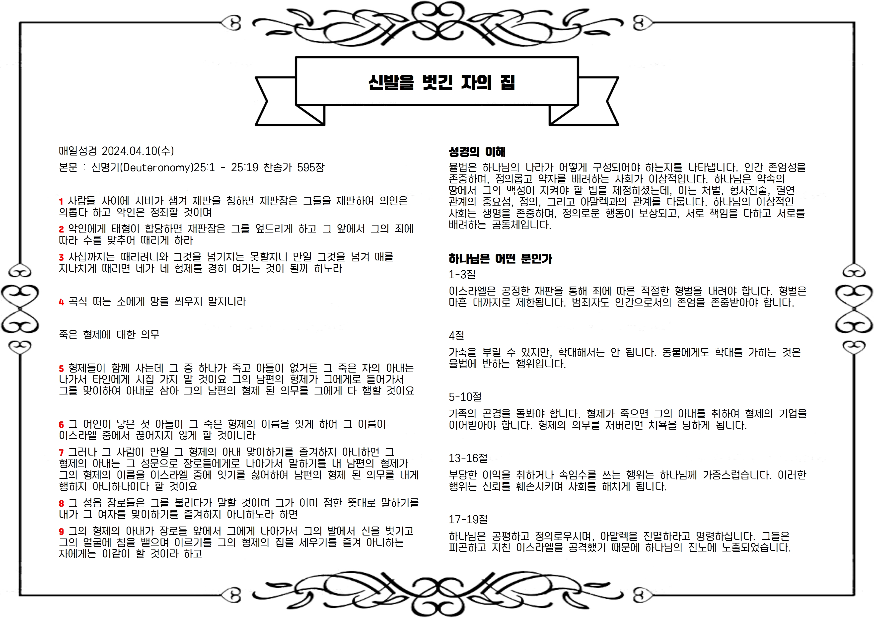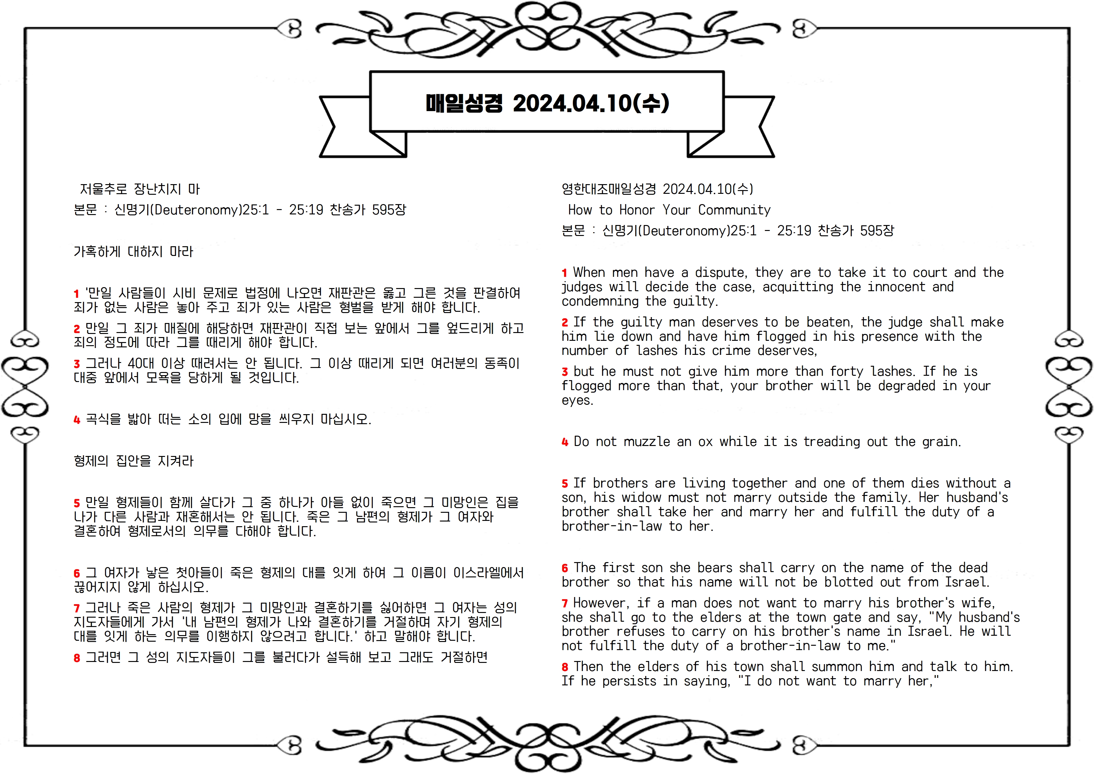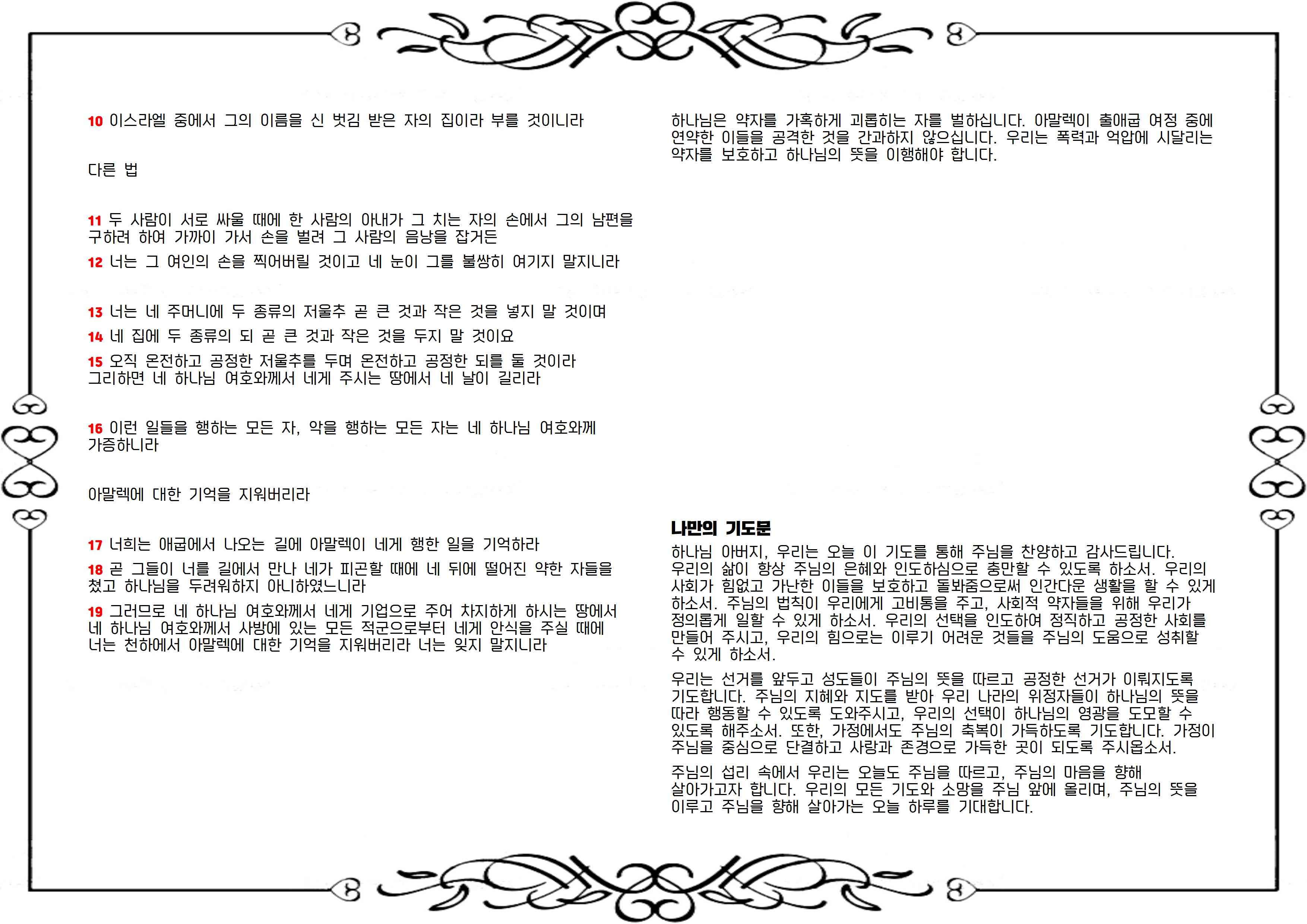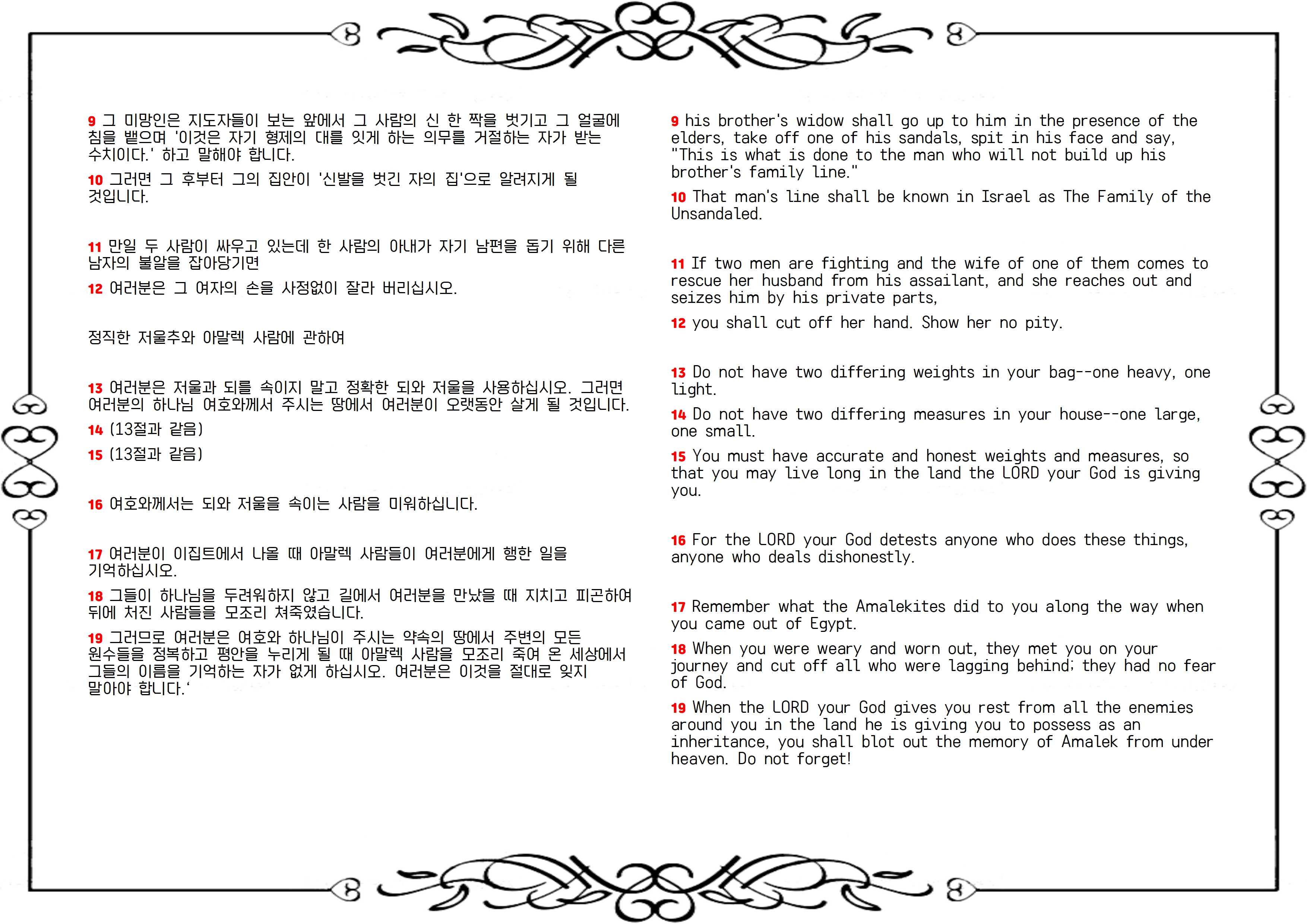 본문 : 신명기(Deuteronomy)25:1 - 25:19 찬송가 595장