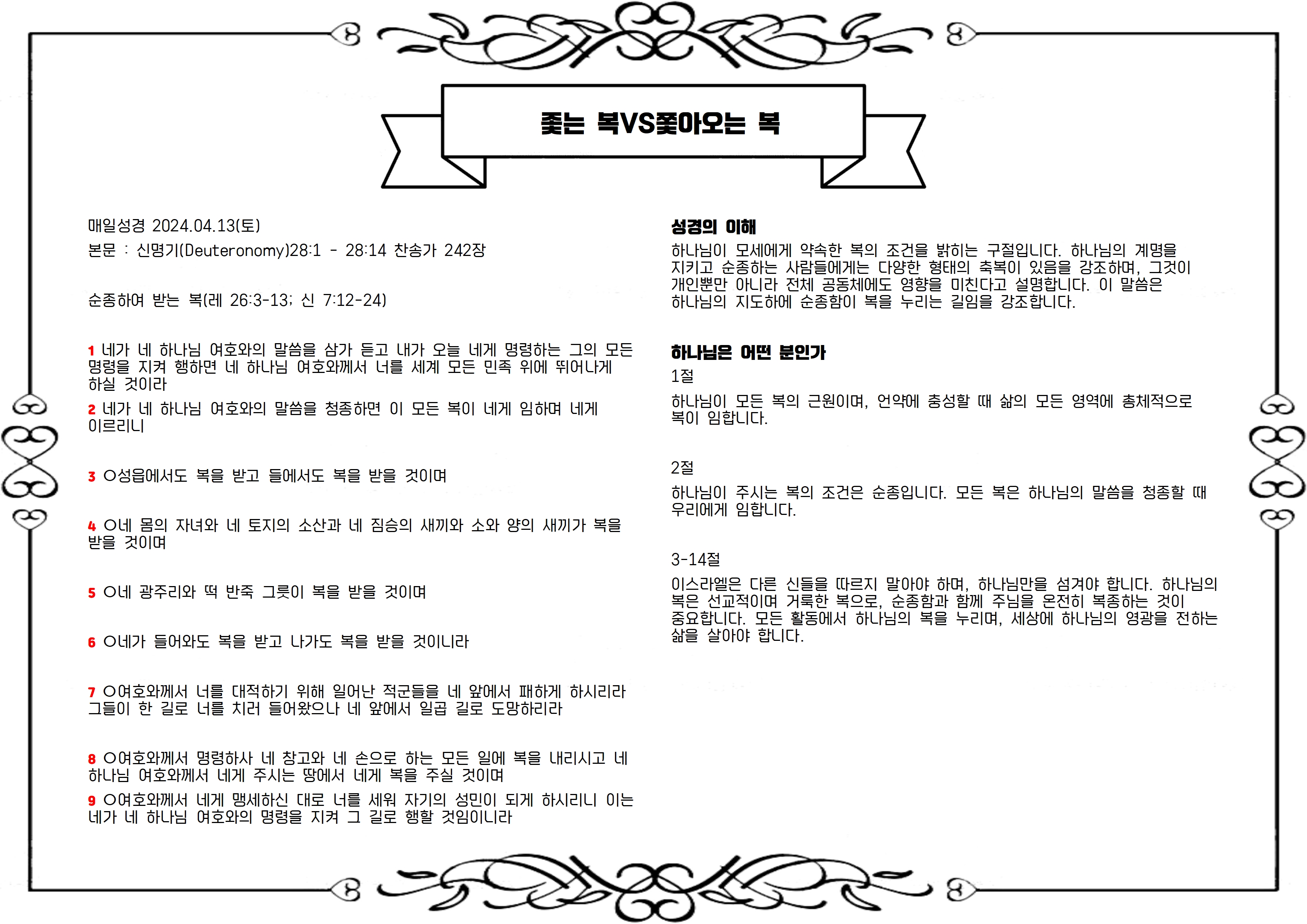 본문 : 신명기(Deuteronomy)28:1 - 28:14 찬송가 242장