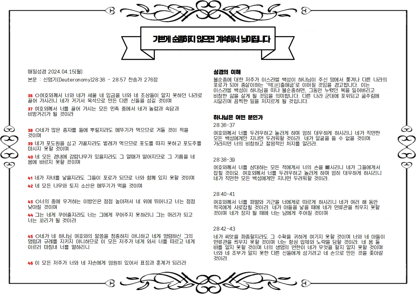 본문 : 신명기(Deuteronomy)28:36 - 28:57 찬송가 276장