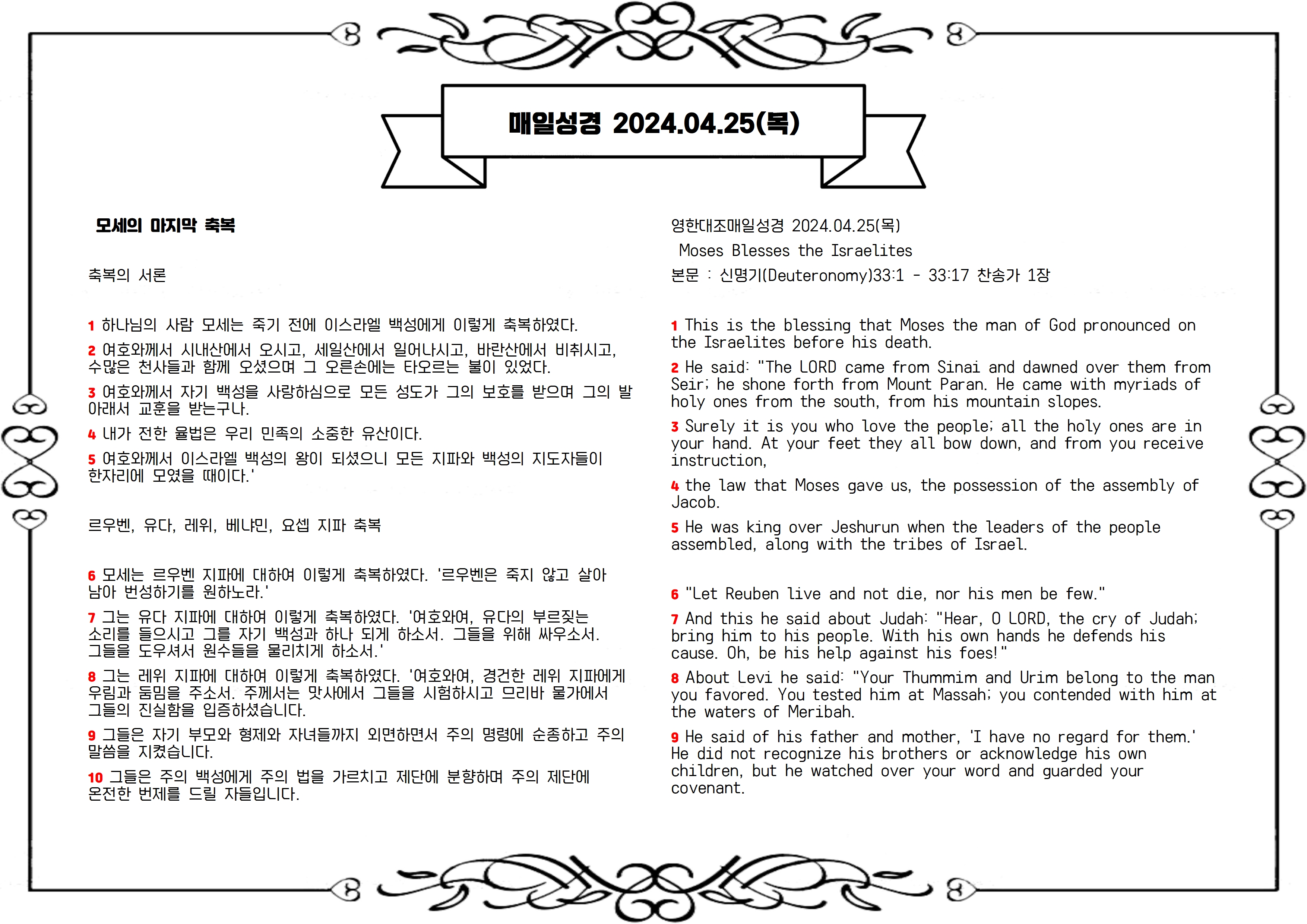 | 매일성경 2024.04.24(수) (0) | 2024.04.23 |