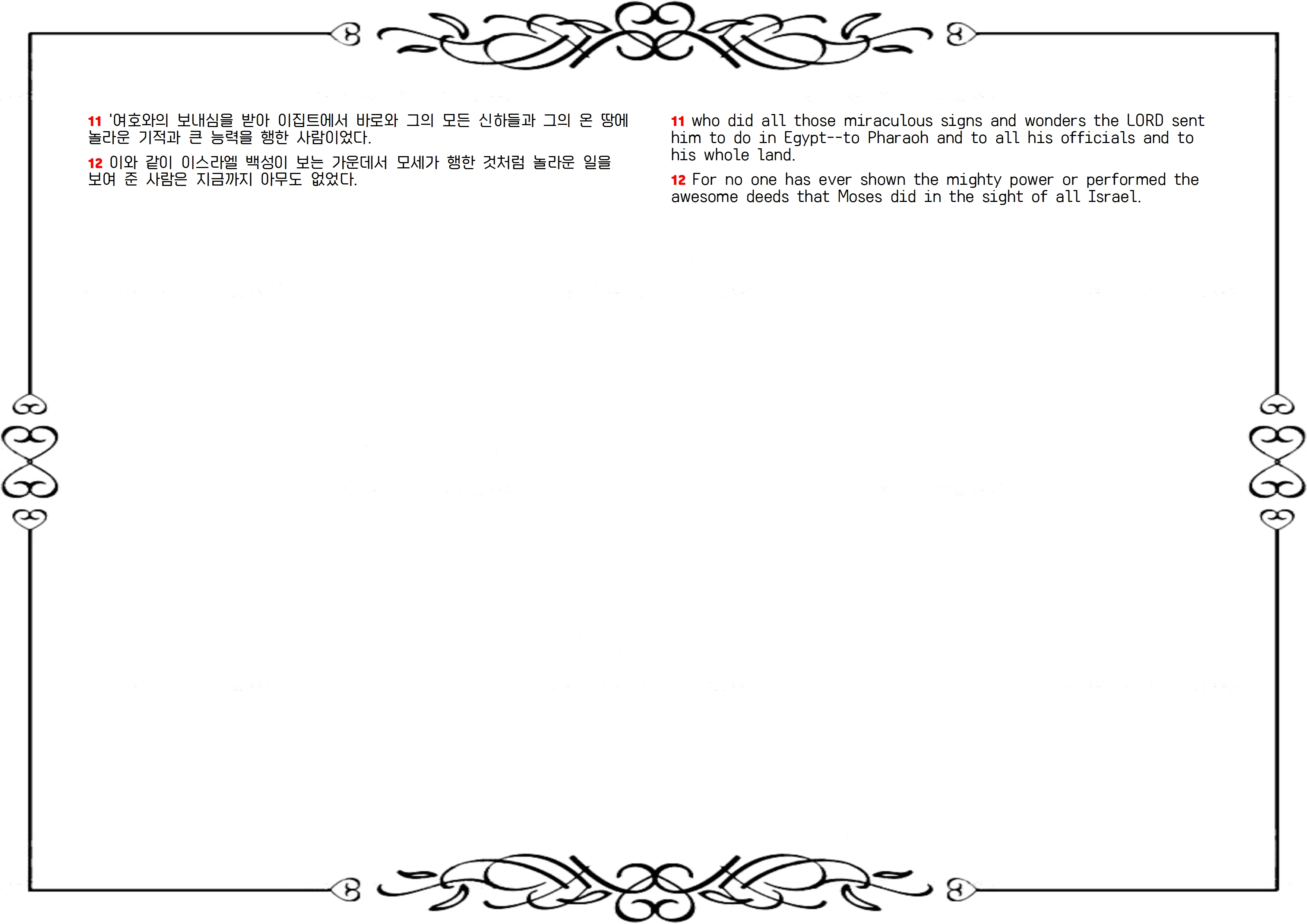 12 모든 큰 권능과 위엄을 행하게 하시매 온 이스라엘의 목전에서 그것을 행한 자이더라