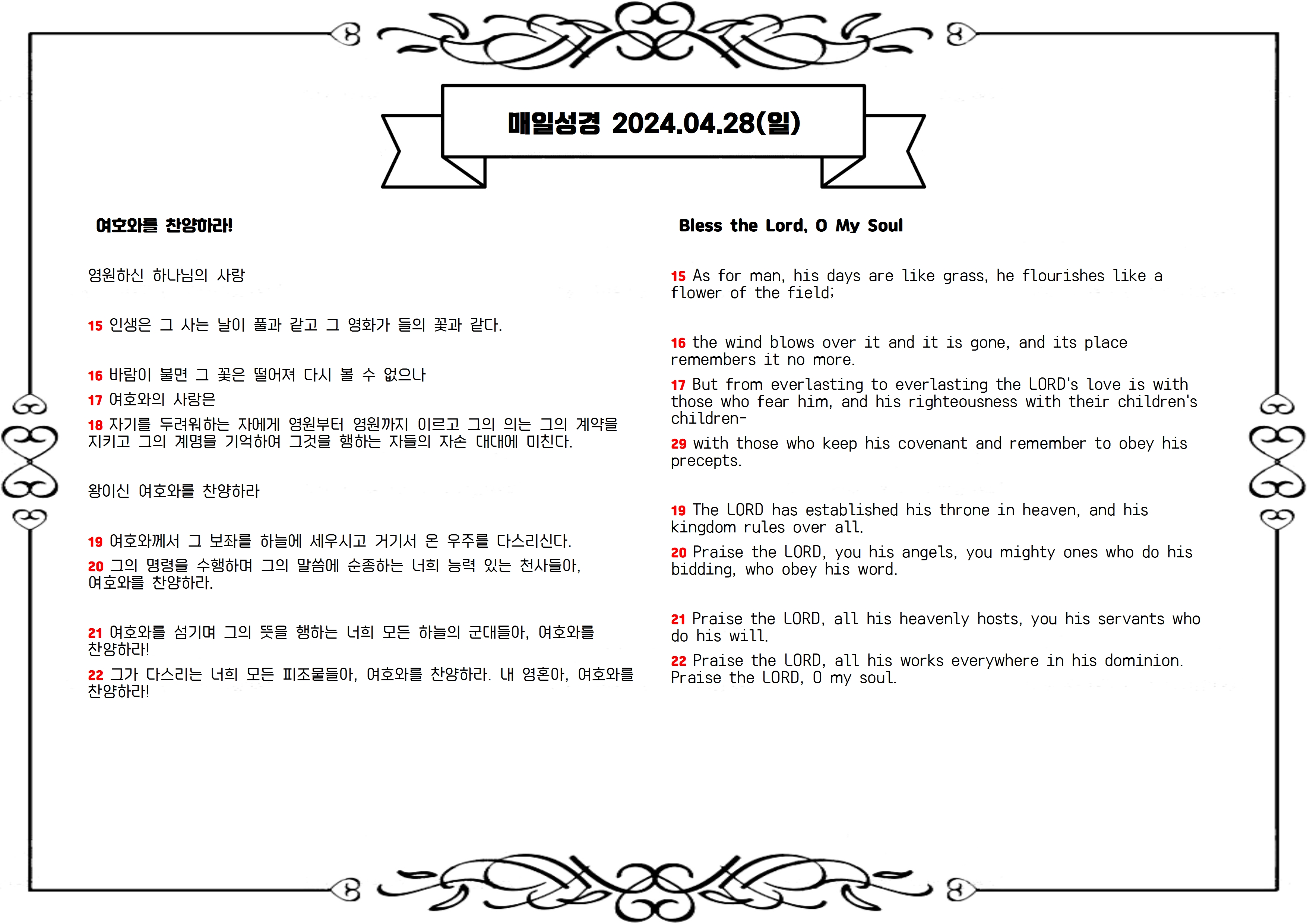 | 매일성경 2024.04.29(월) (0) | 2024.04.28 |