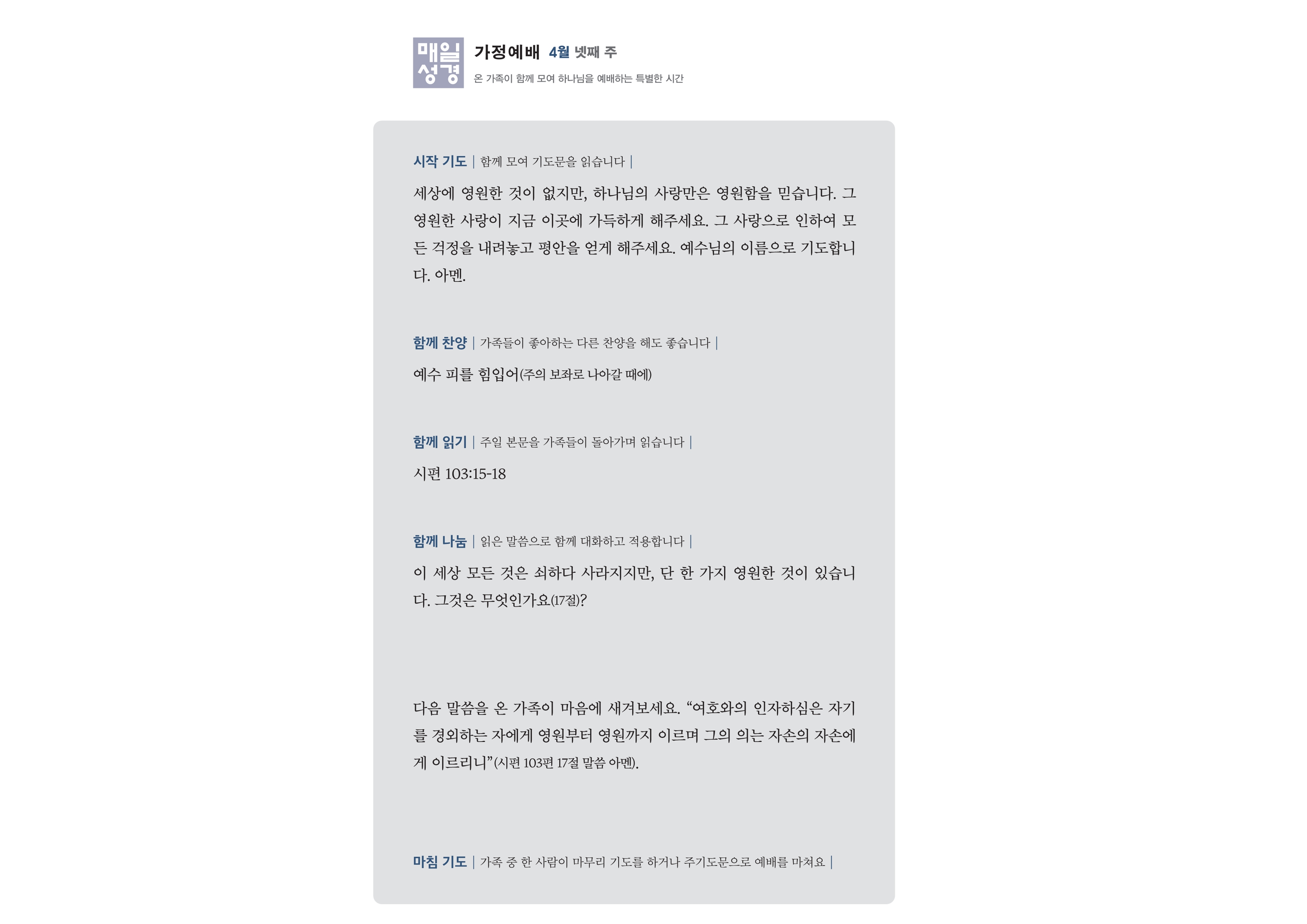 | 매일성경 2024.04.26(금) (0) | 2024.04.25 |