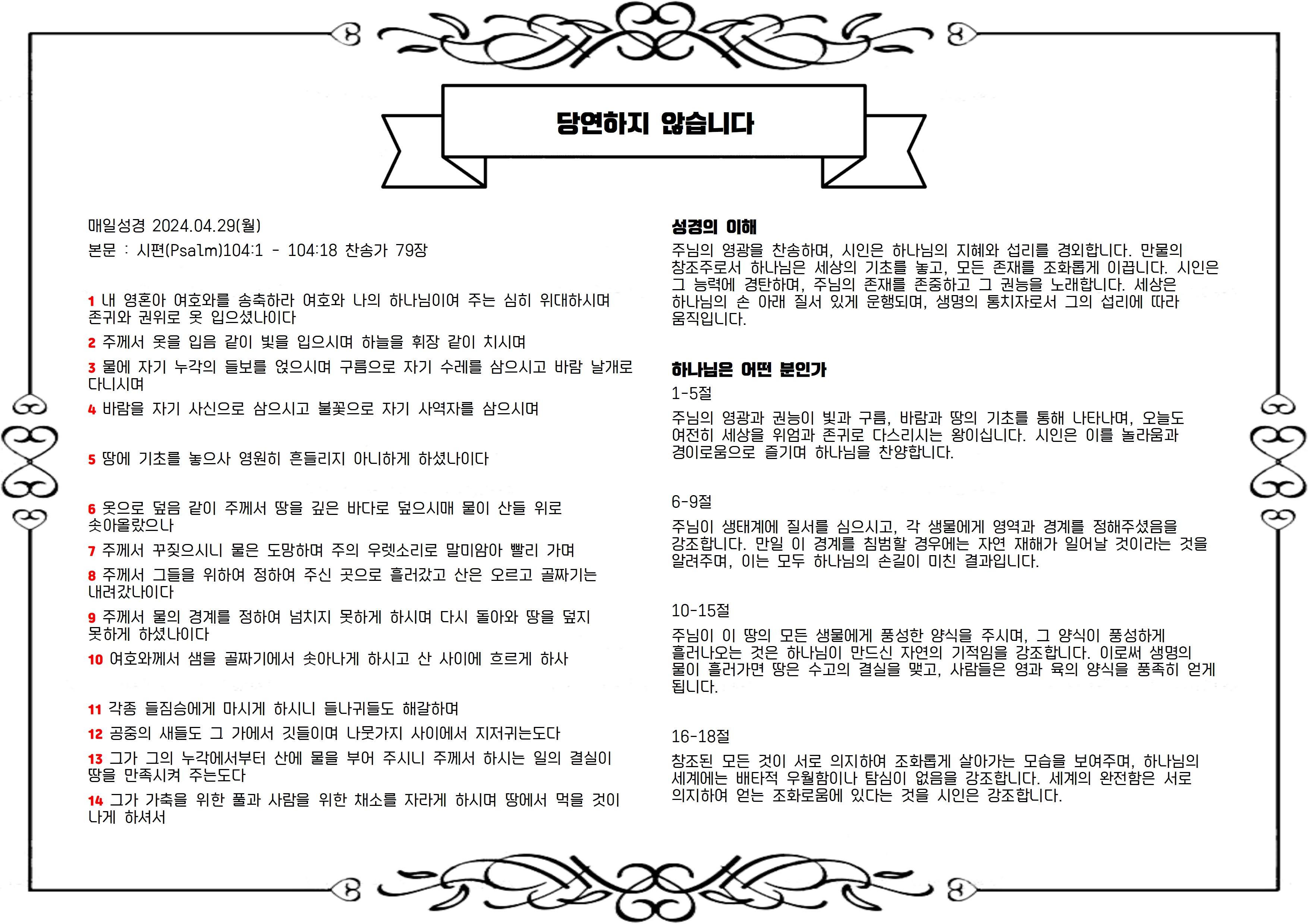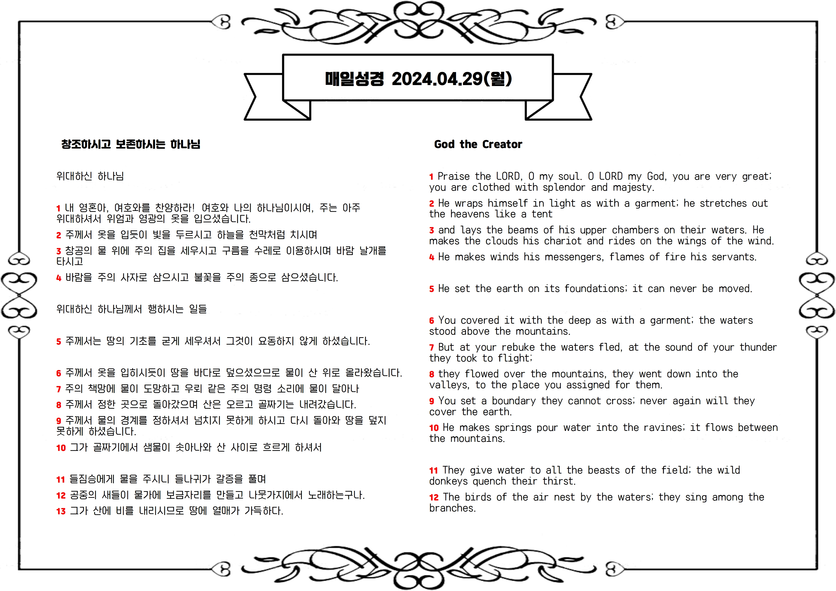 | 매일성경 2024.04.30(화) (0) | 2024.04.29 |
