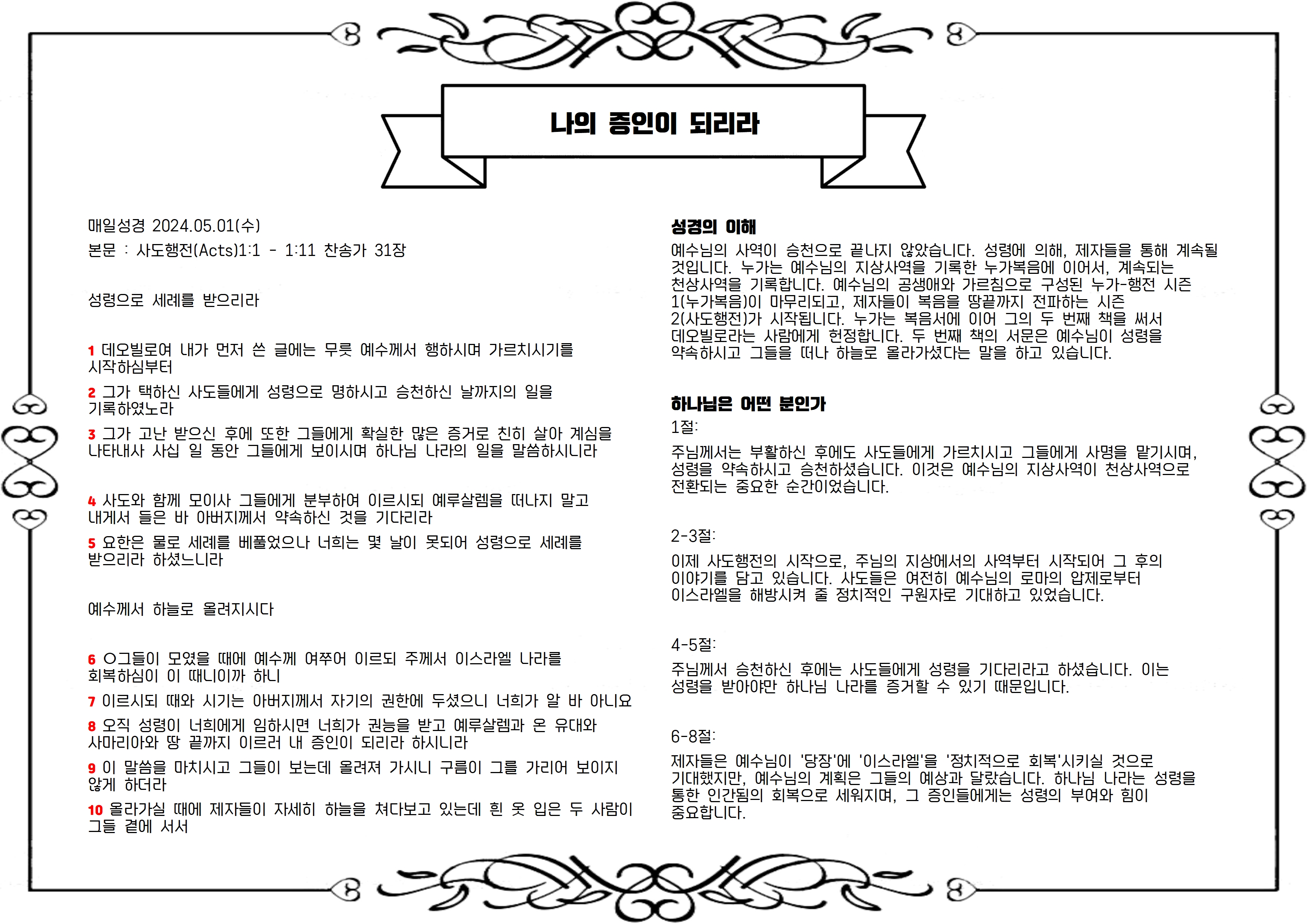 본문 : 사도행전(Acts)1:1 - 1:11 찬송가 31장