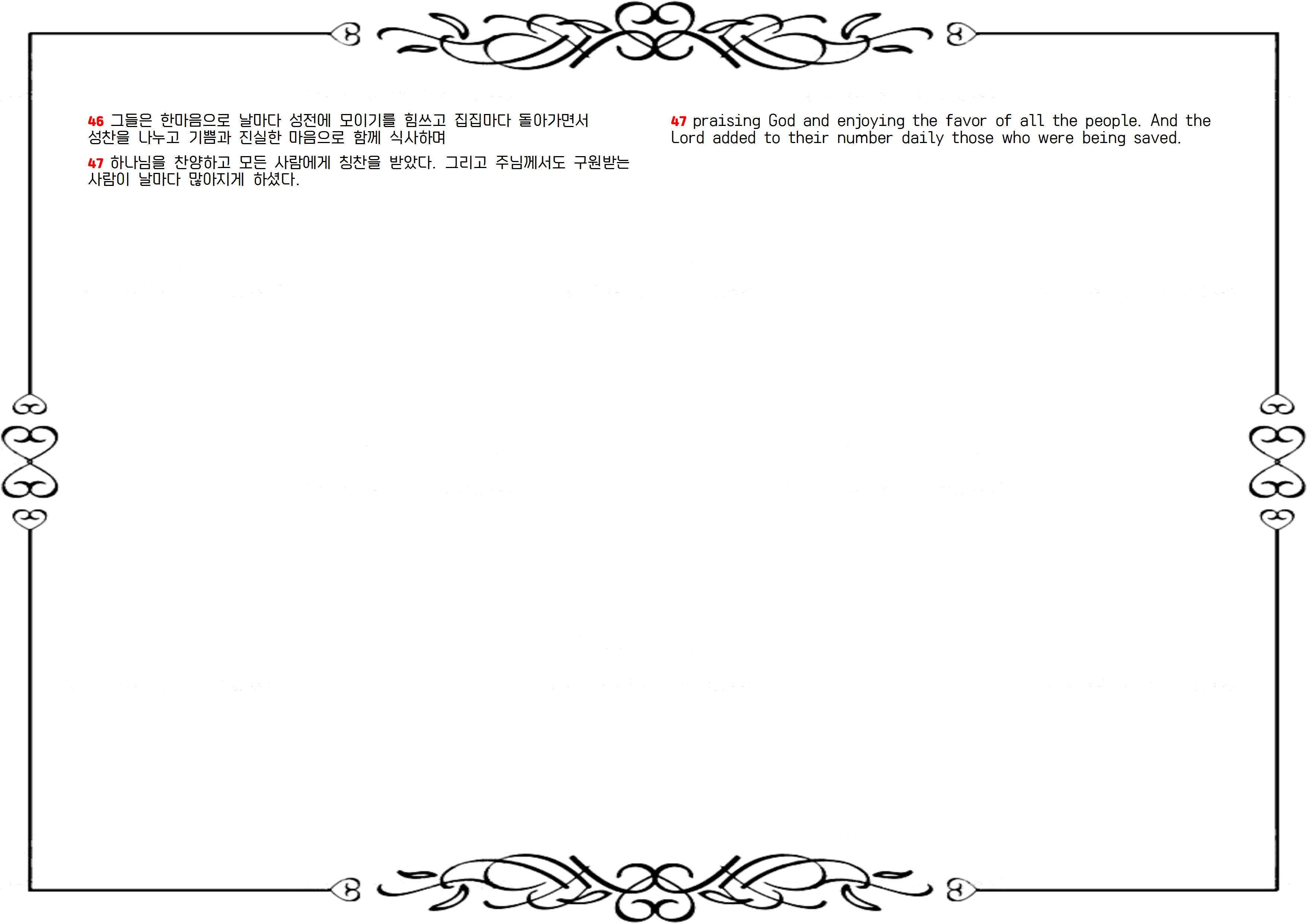 47 하나님을 찬미하며 또 온 백성에게 칭송을 받으니 주께서 구원 받는 사람을 날마다 더하게 하시니라