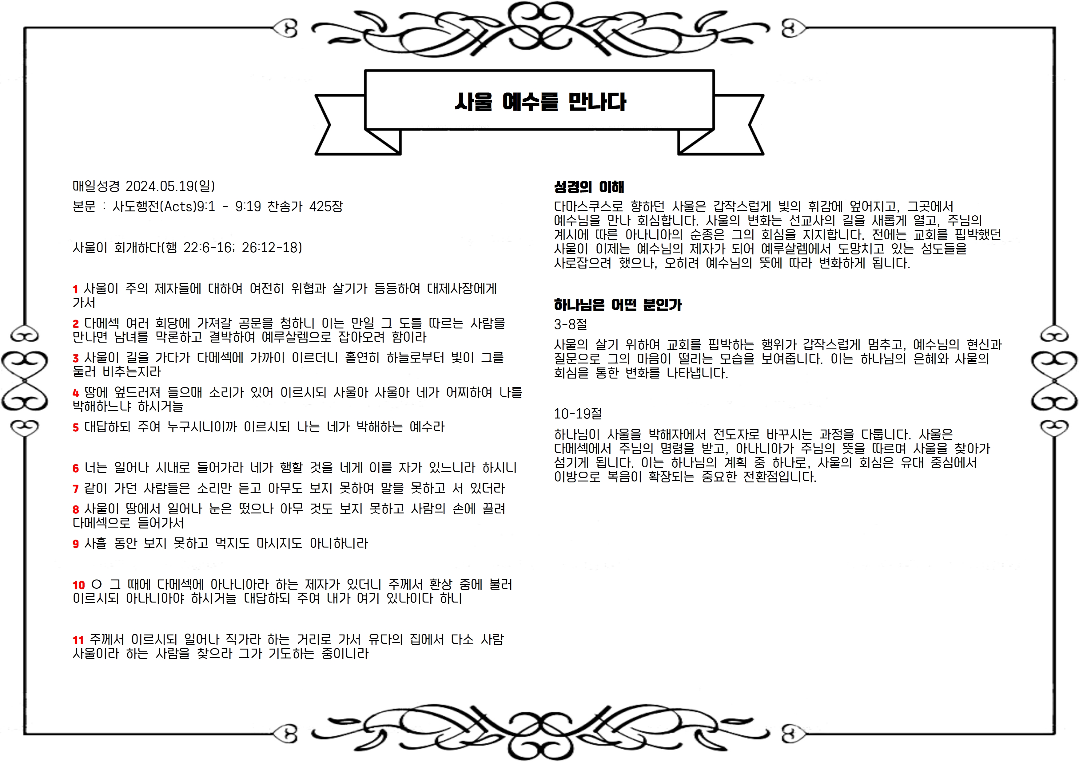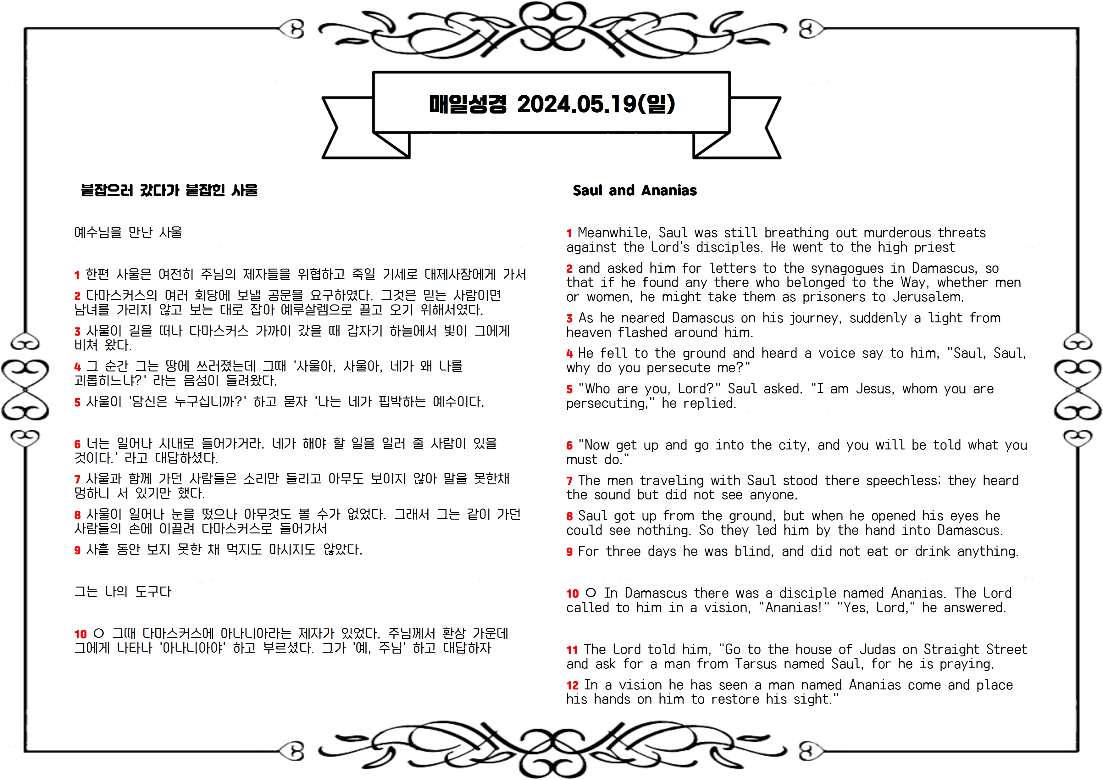 본문 : 사도행전(Acts)9:1 - 9:19 찬송가 425장