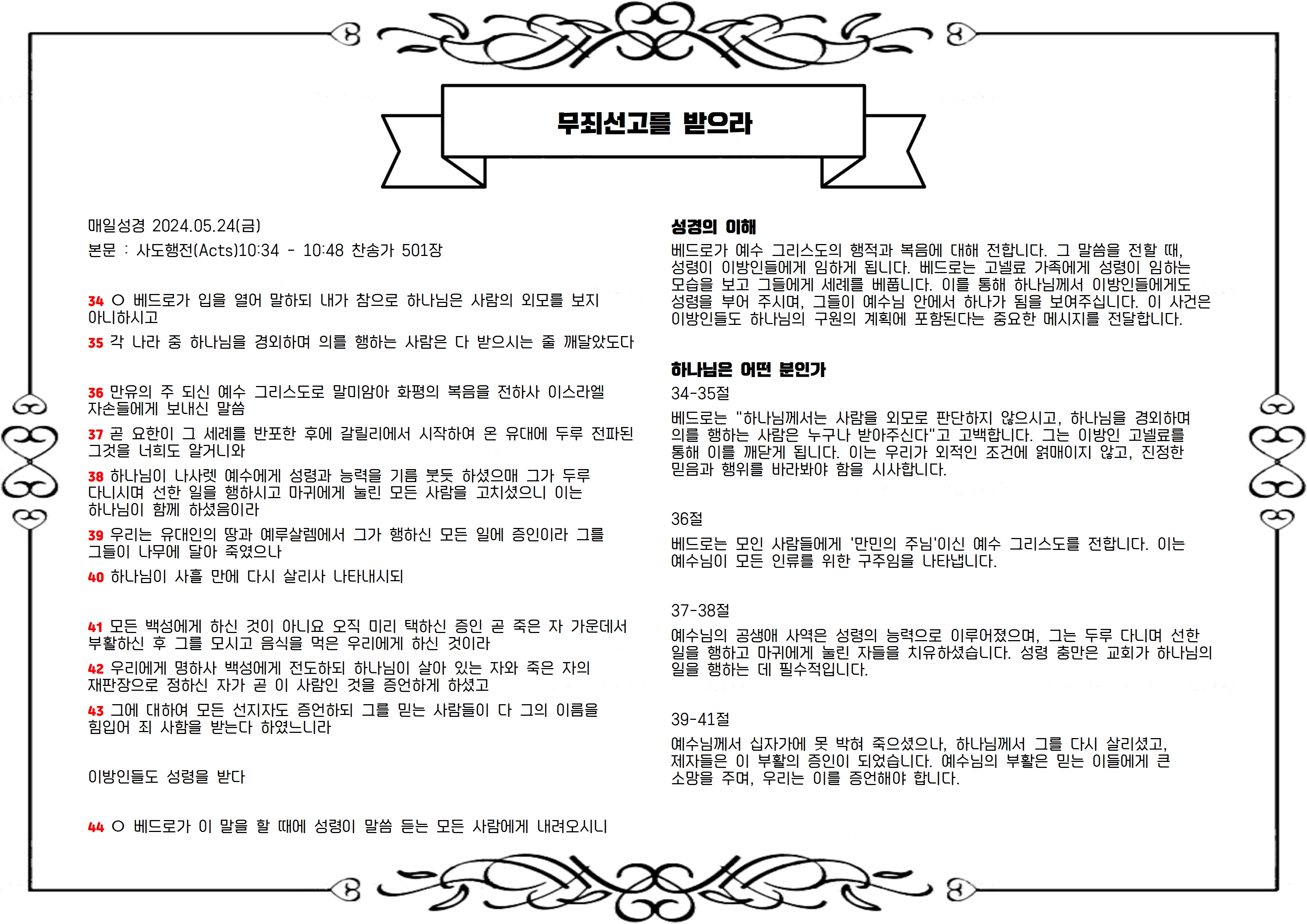본문 : 사도행전(Acts)10:34 - 10:48 찬송가 501장