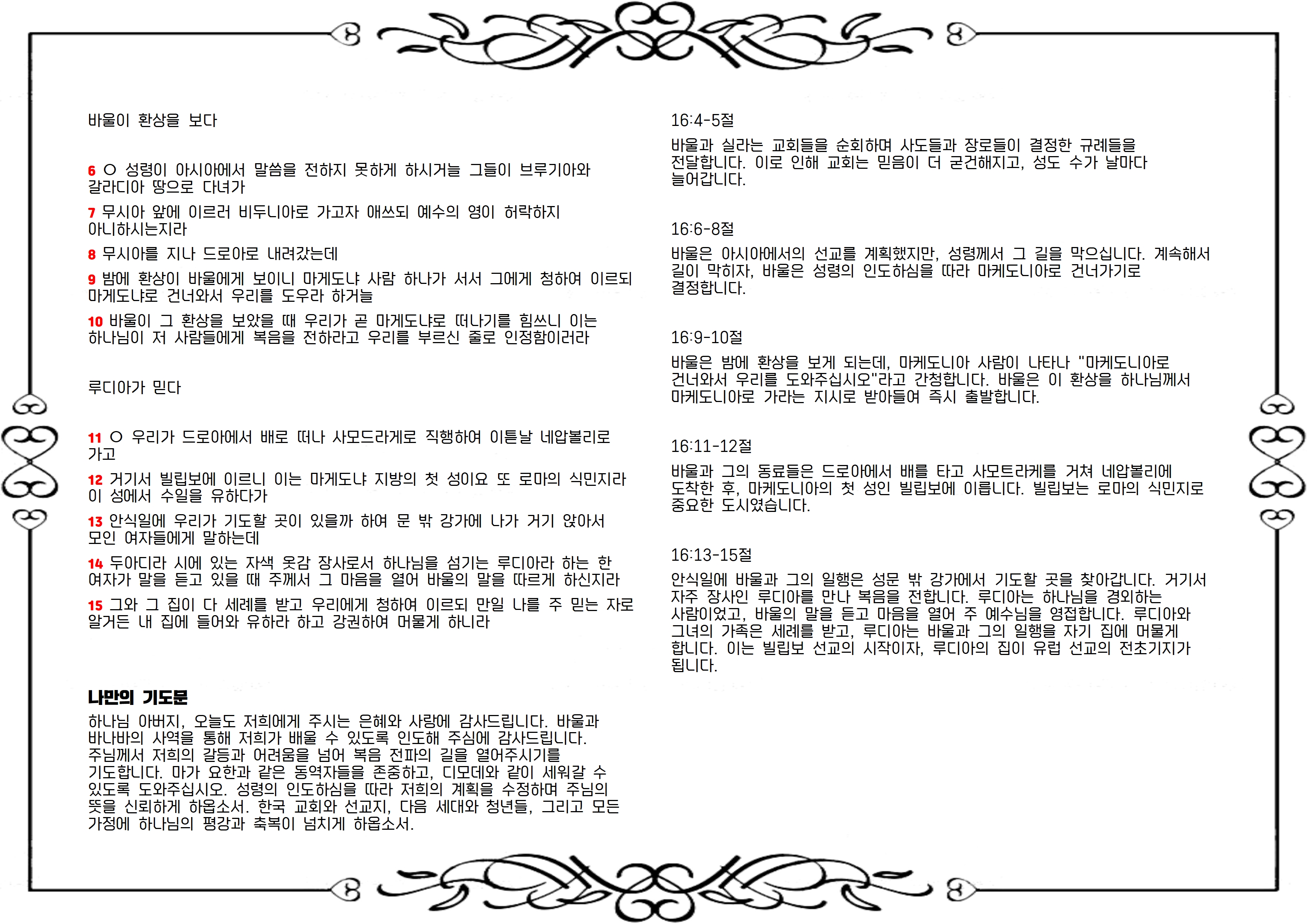본문 : 사도행전(Acts)15:36 - 16:15 찬송가 370장