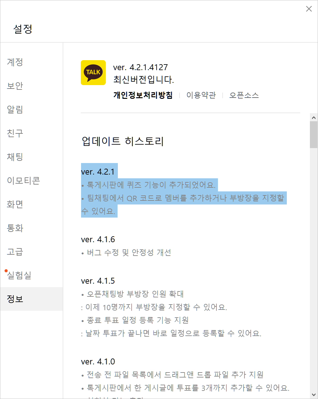 추신 4 : 매번 새로 다운받기 귀찮은분들은 업데이트 알림 떳을때 카톡 자체 업데이트 기능으로 업데이트해도 잘 됩니다 (다만 Data의 용량이 살짝 늘어나고, 차후 새버전 수동으로 덮었을때 잔여물 정리가 귀찮음)
