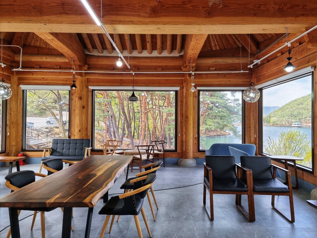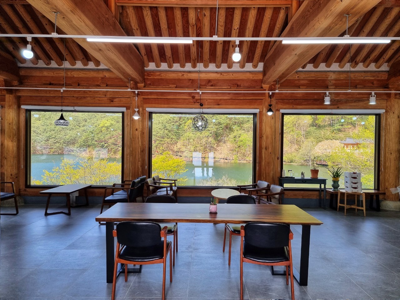천은저수지 주변에 방치되었던 건물을 리모델링하여 오픈한 '카페 천은사에서'는 커피와 전통차를 마시면서 풍광을 한눈에 감상할 수 있습니다.
